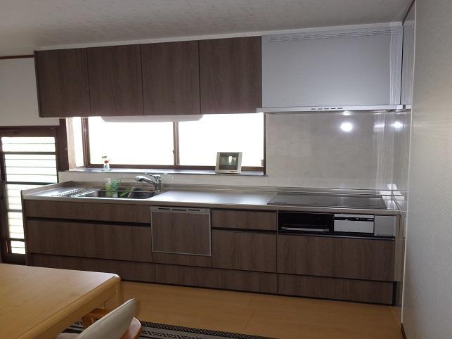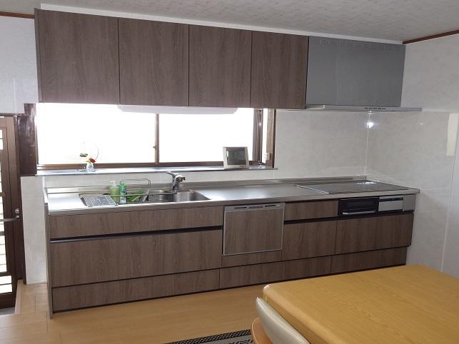 L型キッチンは奥様が使いづらさを感じられていたので、導線が近いI型をご提案しました。 食器洗い乾燥機もご提案し、ご採用くださいました。