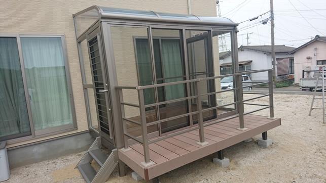 家族が増えるので洗濯物が増える。 天気に左右されずに洗濯物を干せたら。。なおかつ、お布団を干せるスペースも一緒につくってもらえたら、とご相談しました。 本来なら別々の商品だったものを、営業の小柳さんが上手く組み合わせてくださり、提案してもらいました。 採風ドアがついているので、物干し場から外へ出ることも出来るので便利です。 ウッドデッキ兼布団干しスペースも大変満足しています。急な雨でもすぐに取り込んで洗濯物干し場に干せるのでいいです。