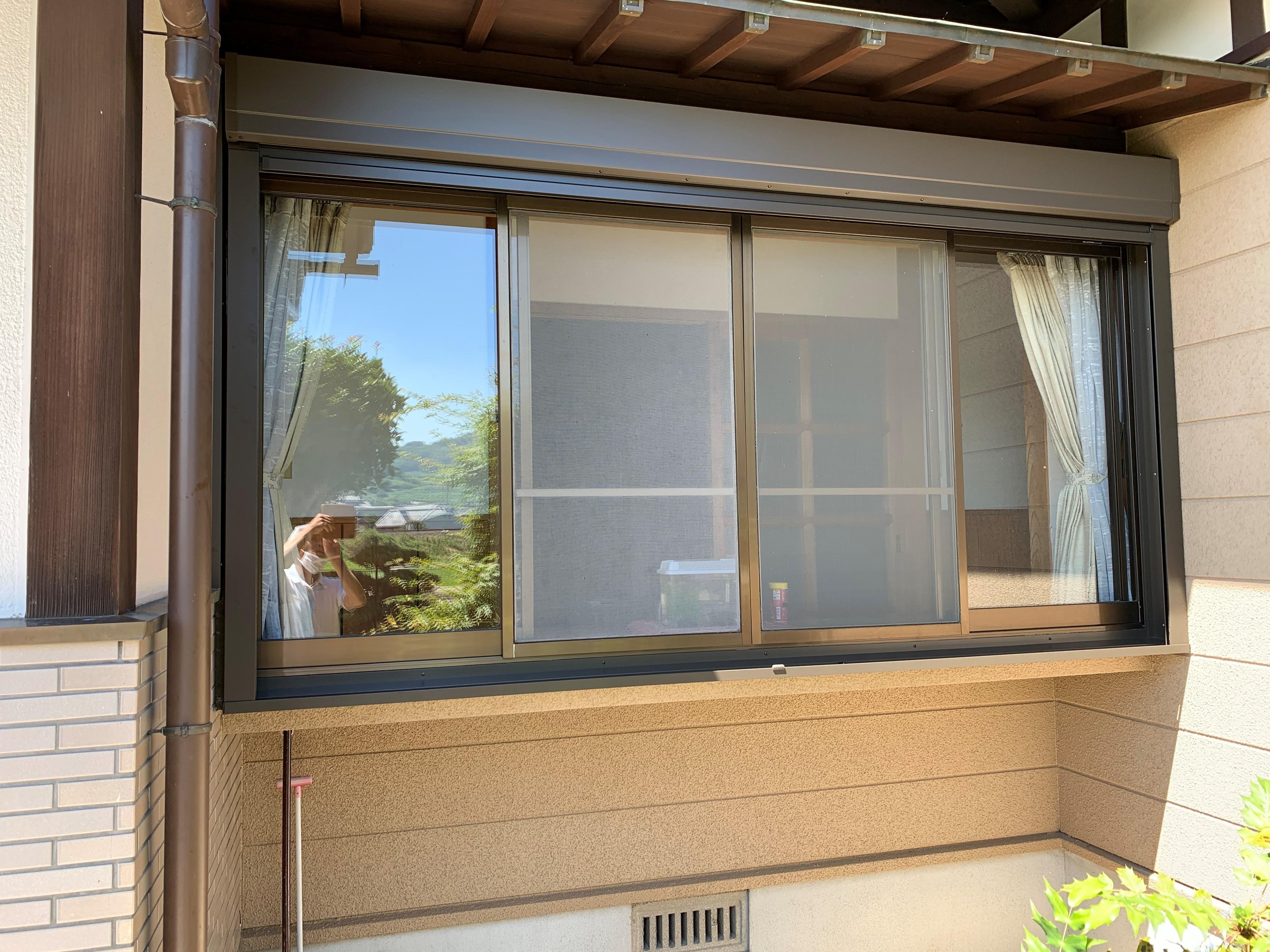 サッシの上部、幅ともギリギリでしたが、1枚のシャッターできれいに設置ができました。