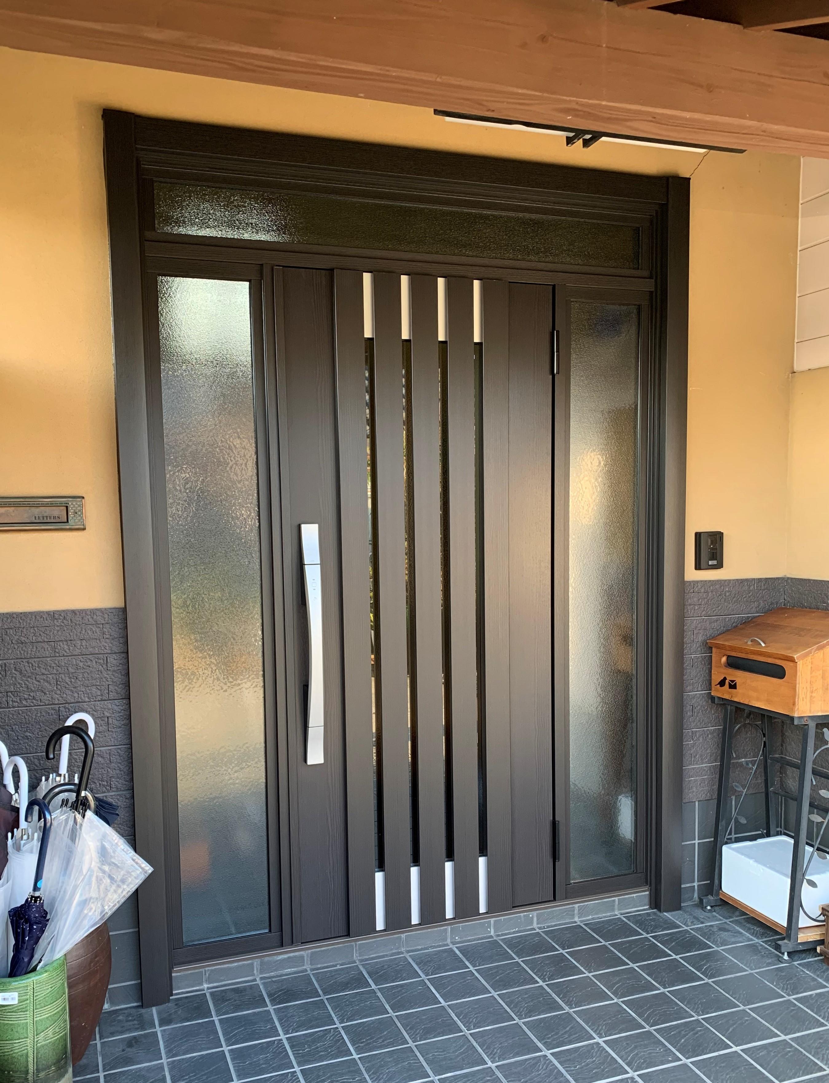 今までの玄関と違う色合いですが、大変気に入っています。 鍵穴も目立たなくなり、安心です。玄関がすごく明るくなりました。
