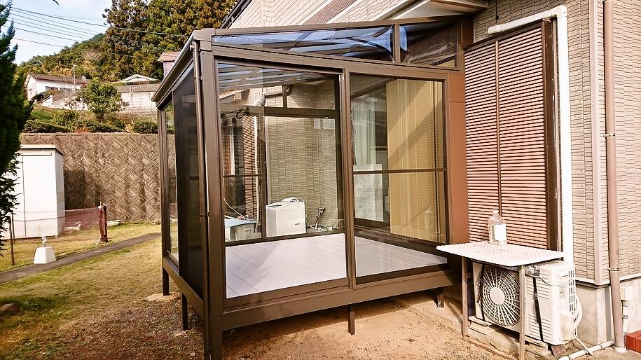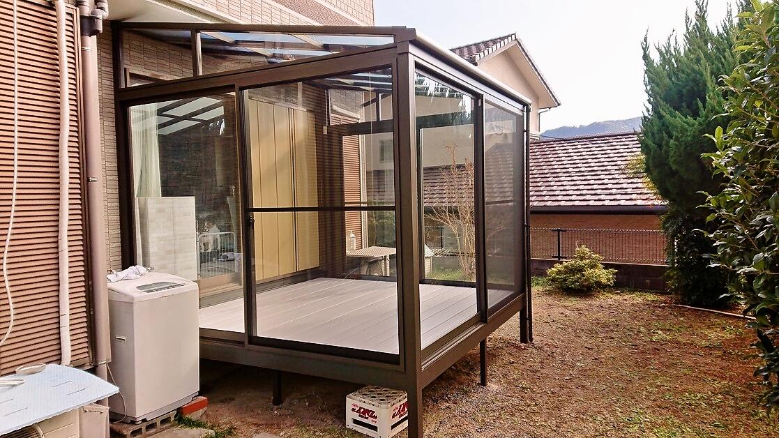 雨風が強い日でも洗濯物が飛ばされず、濡れないテラスをご希望されていましたので、【サニージュ F型】をご提案しました。