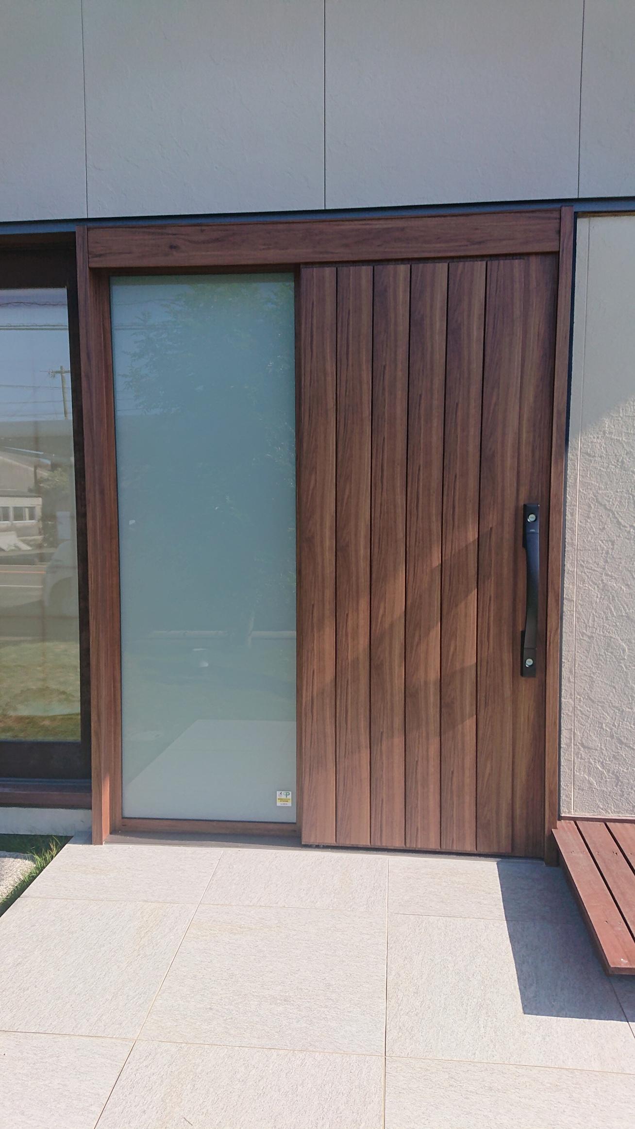 玄関引き戸の半分がガラス、残りの半分が木製で枠も木製でしたので、同様の玄関となると特注品になりますとご案内しました。