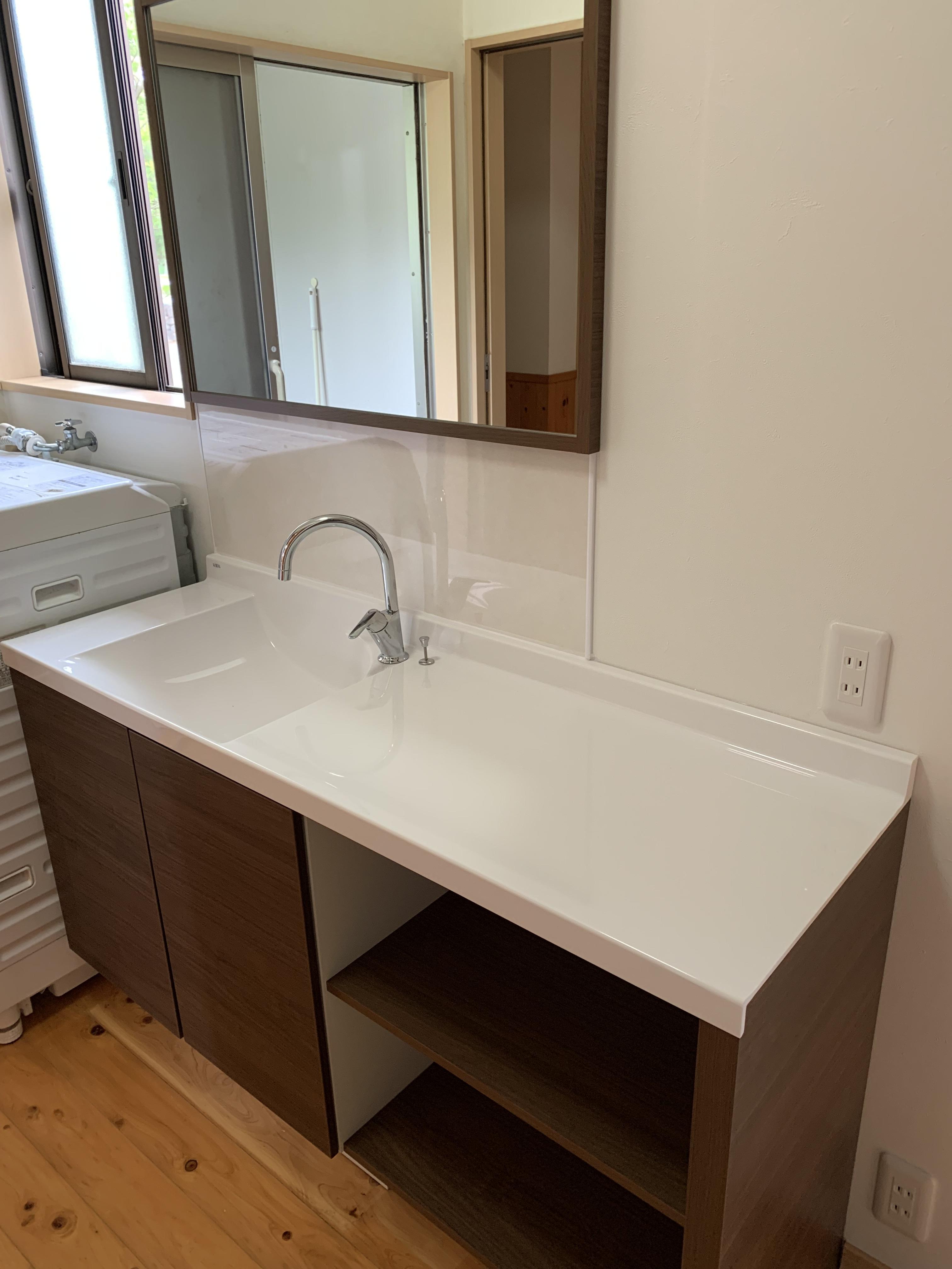 キャビネットが落ちてきて洗面化粧台として使えなくなったので、新しくしたいとご相談されました。