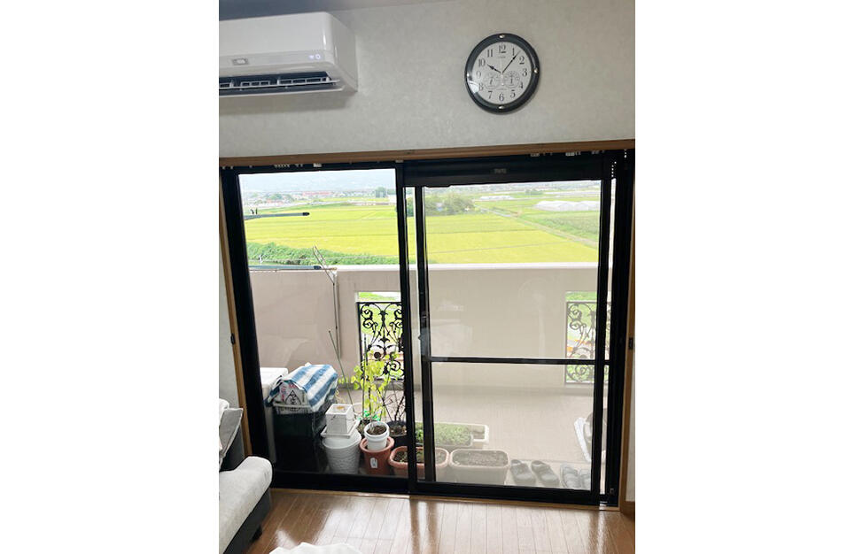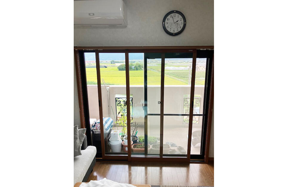 窓は「インプラス」。既存の窓の内側に窓枠を取り付けるので、短時間で工事が完了します。今回は、リビングを含む6つの窓の交換を賜りました。