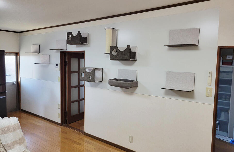「猫カフェで見た猫壁を自宅にも設置したい」「もっと自由に遊ばせてあげたい」とご相談いただきました。