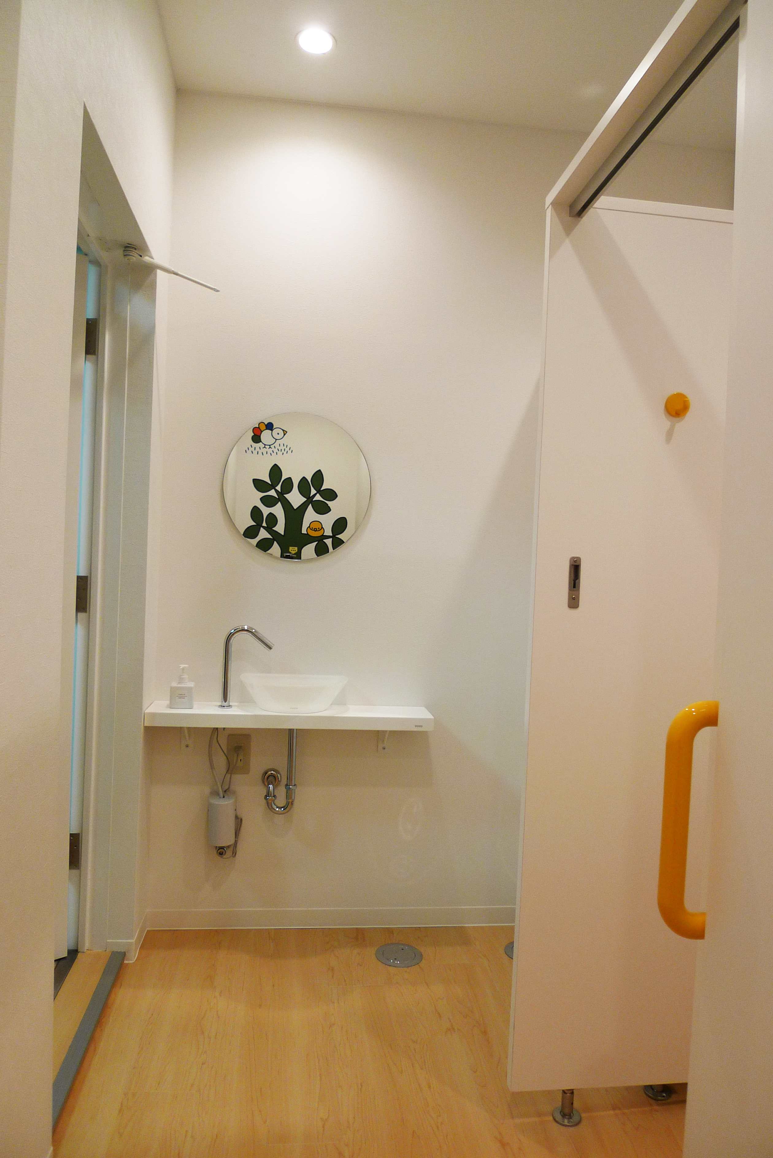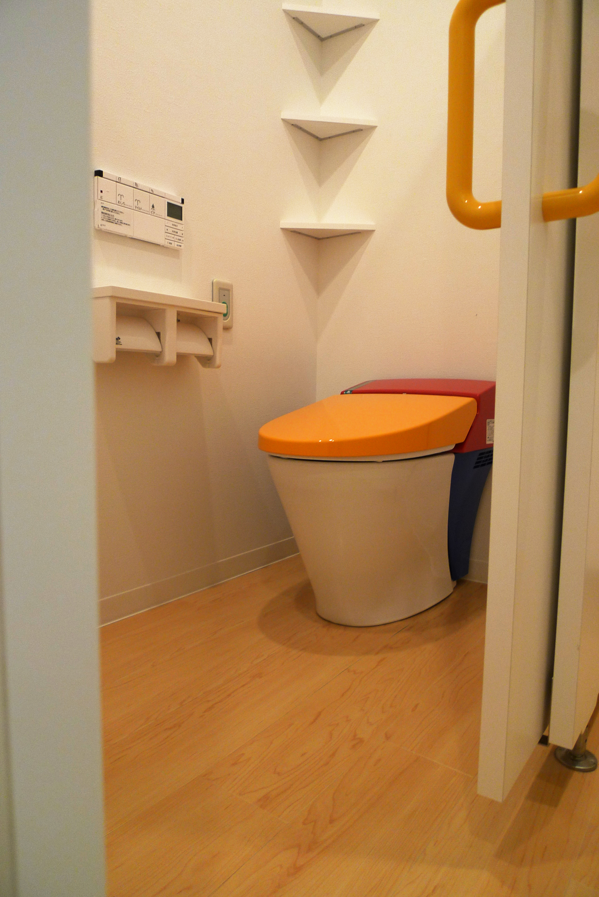 お子さんがひとりで入ると”怖いトイレ”をママたちの声を集めてリニューアル”わくわくするトイレ”へ。清潔で安全な”ひとりで入れるトイレ”になりました。