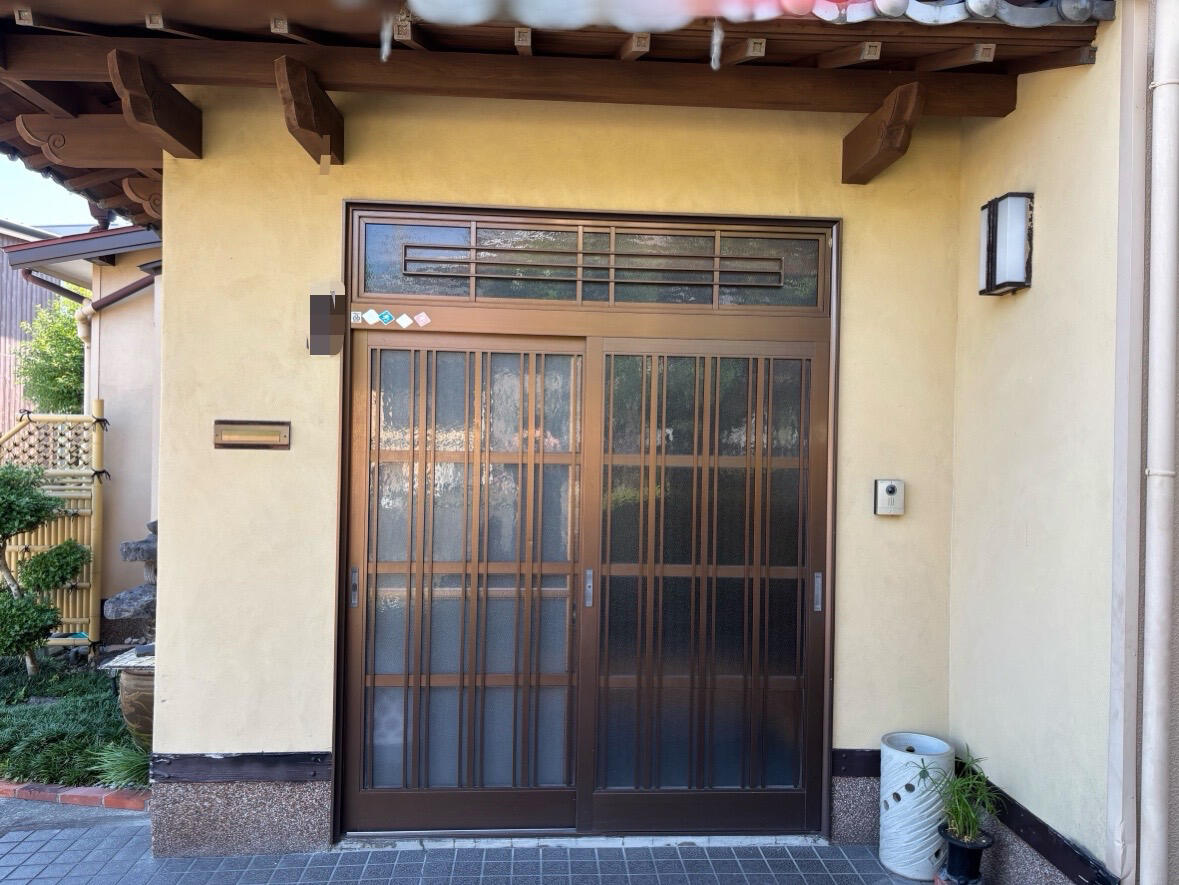 玄関に設置されていた一枚ガラスの引戸から、夏場になると強い日差しと熱気が容赦なく入り込み、玄関付近に立つことすらできないほどの暑さに悩まされていたお客様。快適で使いやすい玄関空間にしたいという思いから、断熱性能の高い玄関引戸へのリフォームをご希望されました。