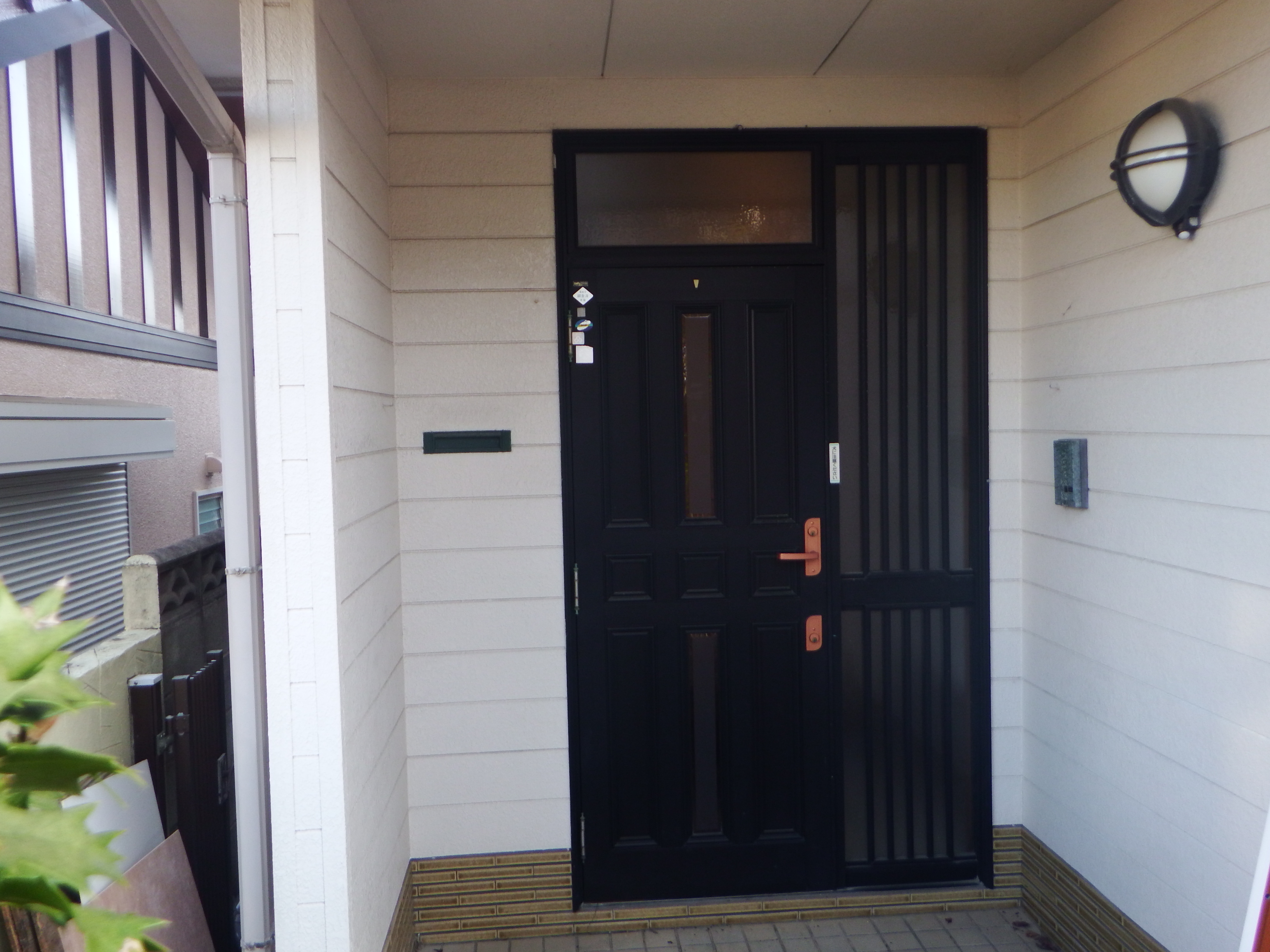 施工完了!黒く重たい印象のあった既設のドアから、温かく軽快な印象のブラウンの玄関ドアへ