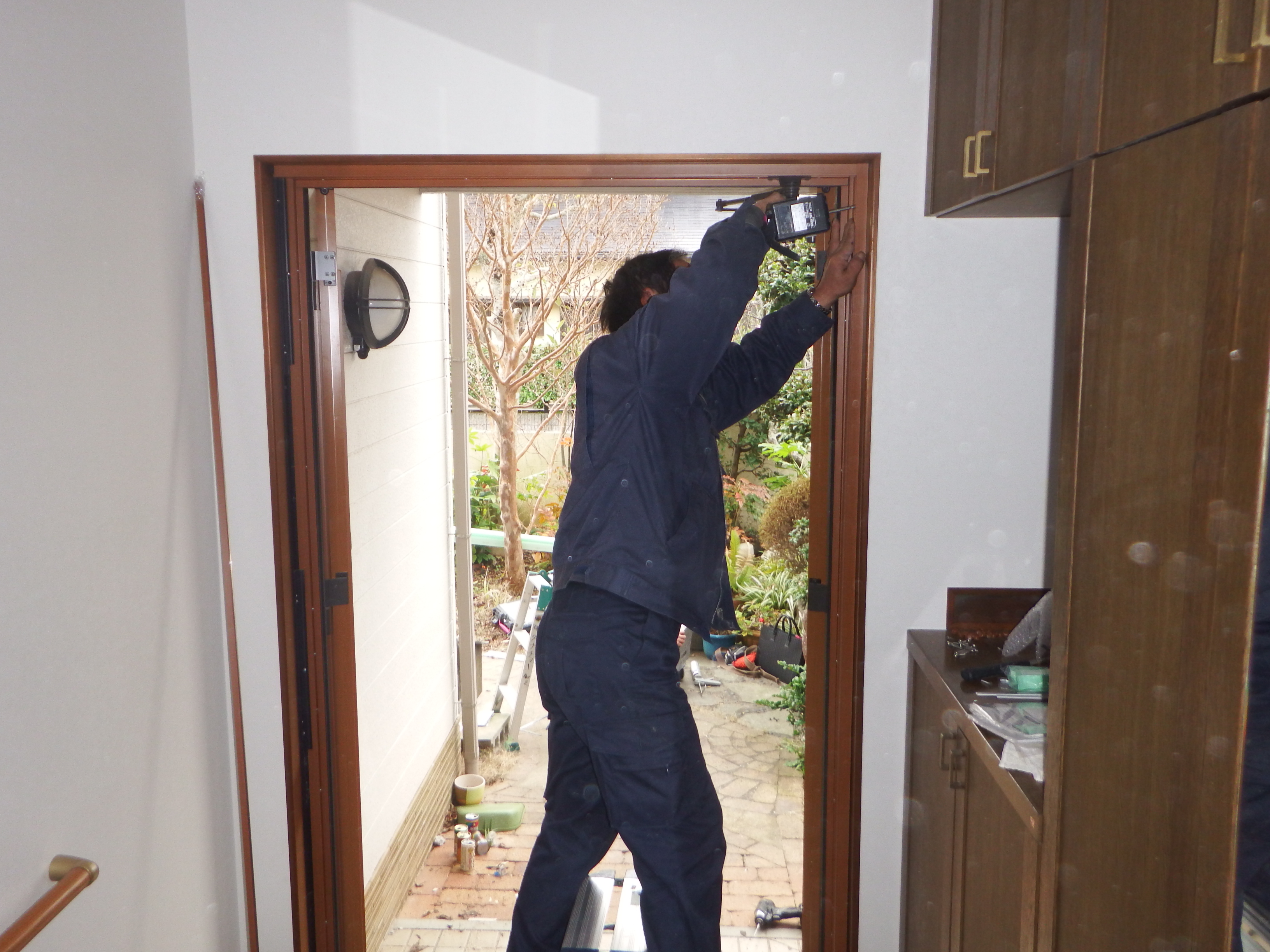 既設ドアの外枠を撤去すると、外壁や床まで工事する必要があるのでとても大がかりになりますが、
