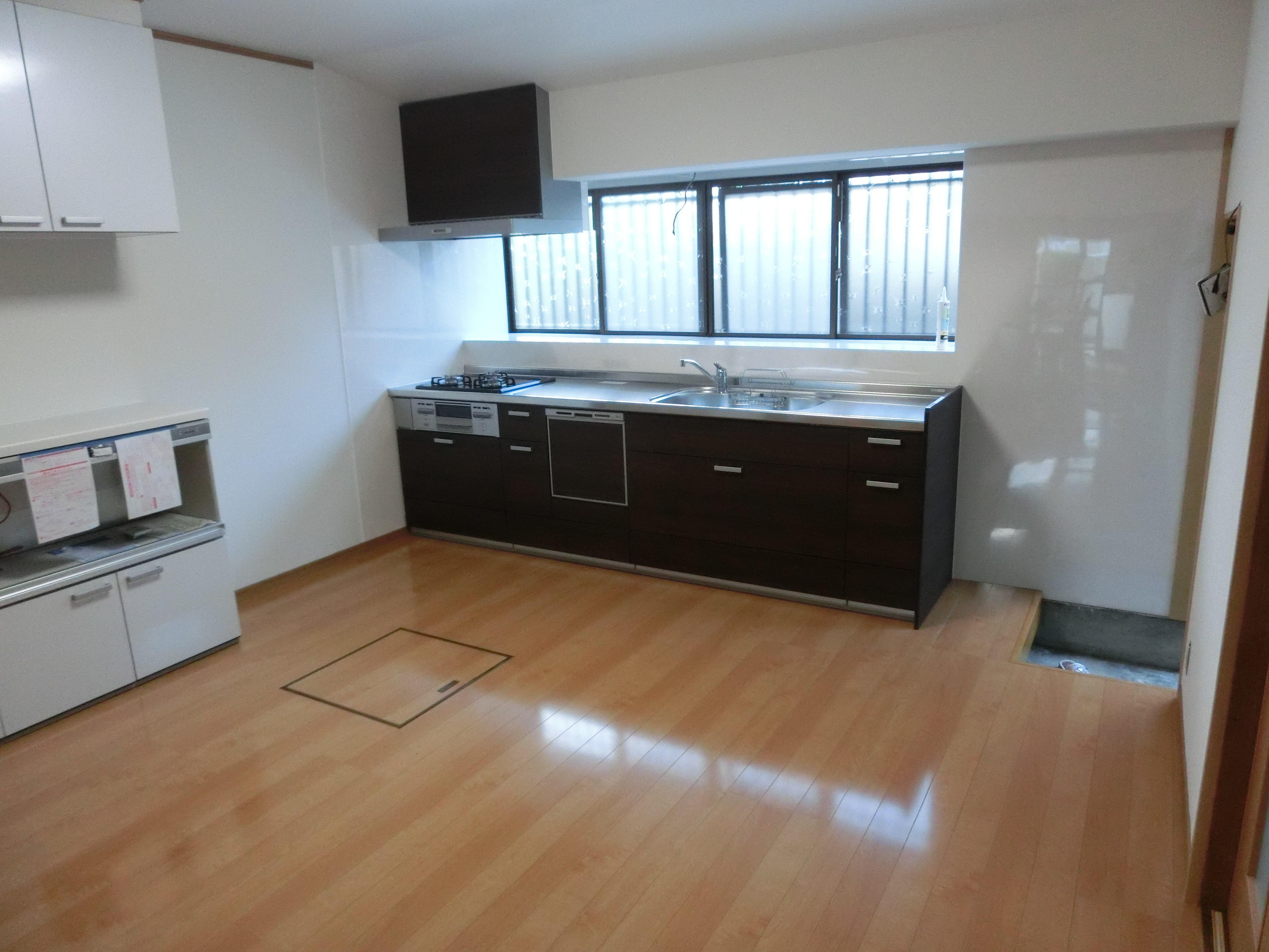 大胆にコンロ位置を変更しています!食洗機付きのシステムキッチンで収納充実★大きな窓はそのままなので、光がよく入ります!