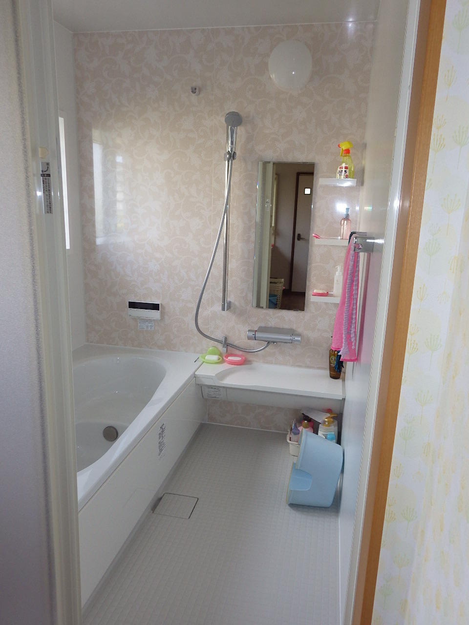 お風呂全面リフォームしました。白ベースなのでとても清潔感があり気持ちがいいですね♪