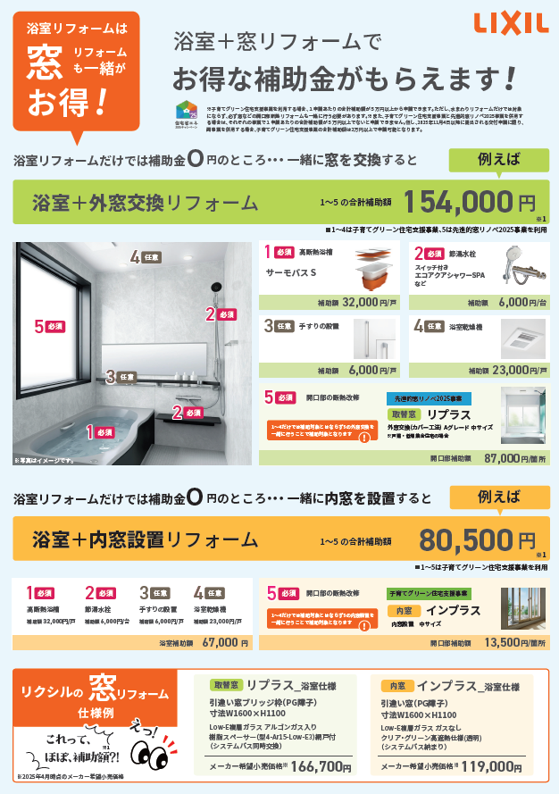 浴室のリフォームは窓リフォームも一緒がお得!