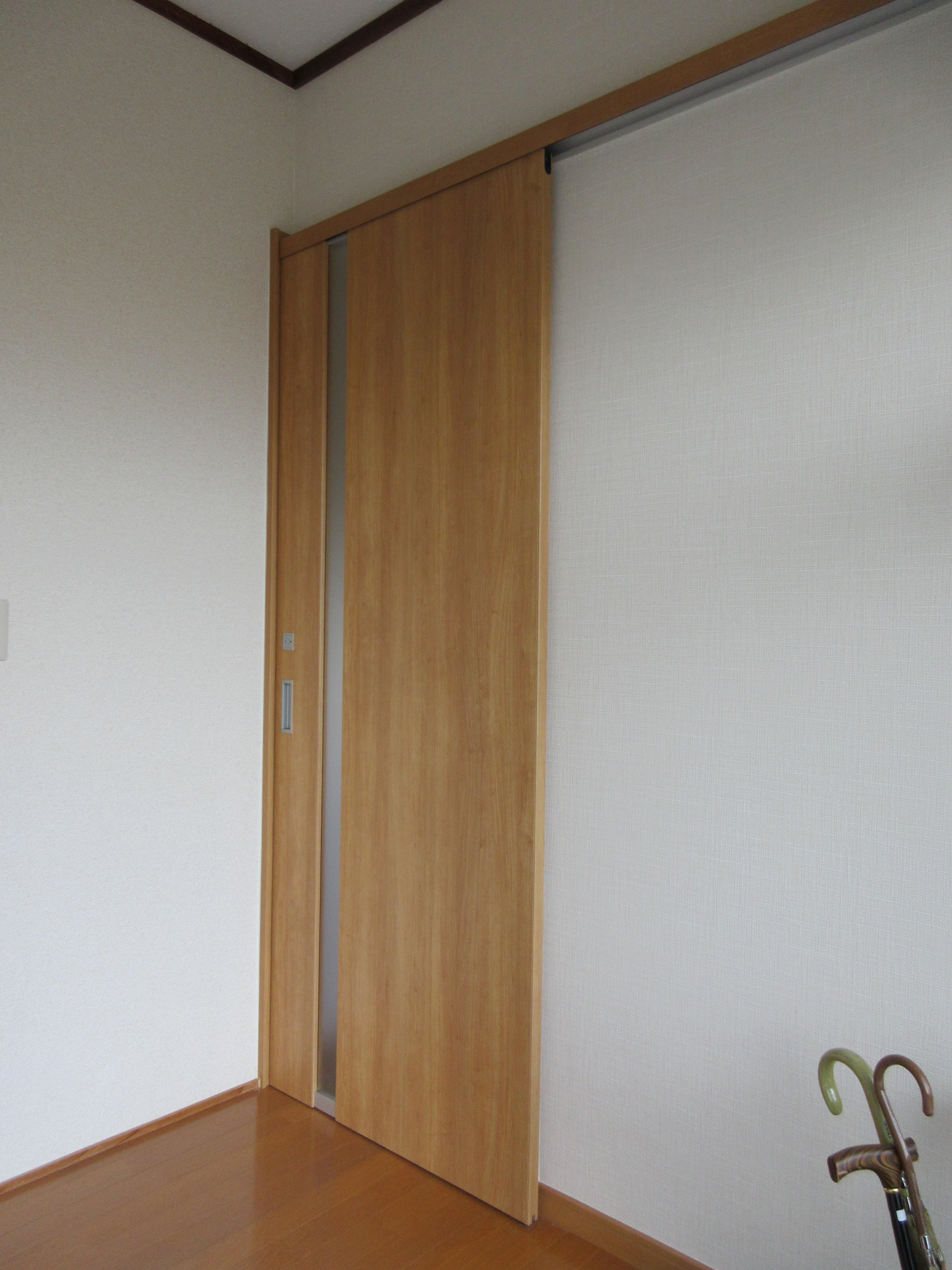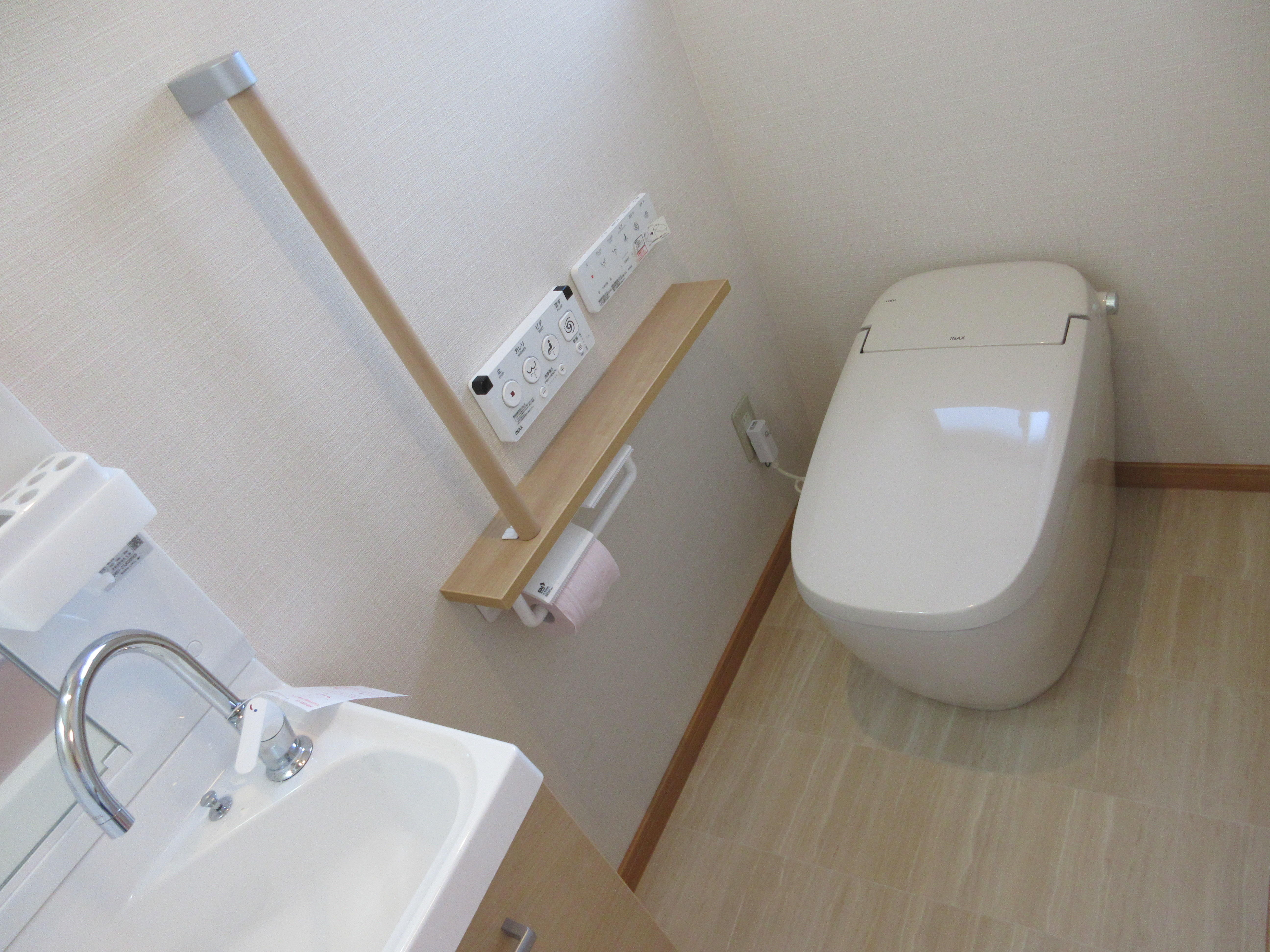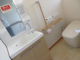 トイレが狭く入口も片開き戸でしたが、入口の位置を変更することで片引き戸に変更し、室内も広く手洗用の洗面台も設置出来ました。
