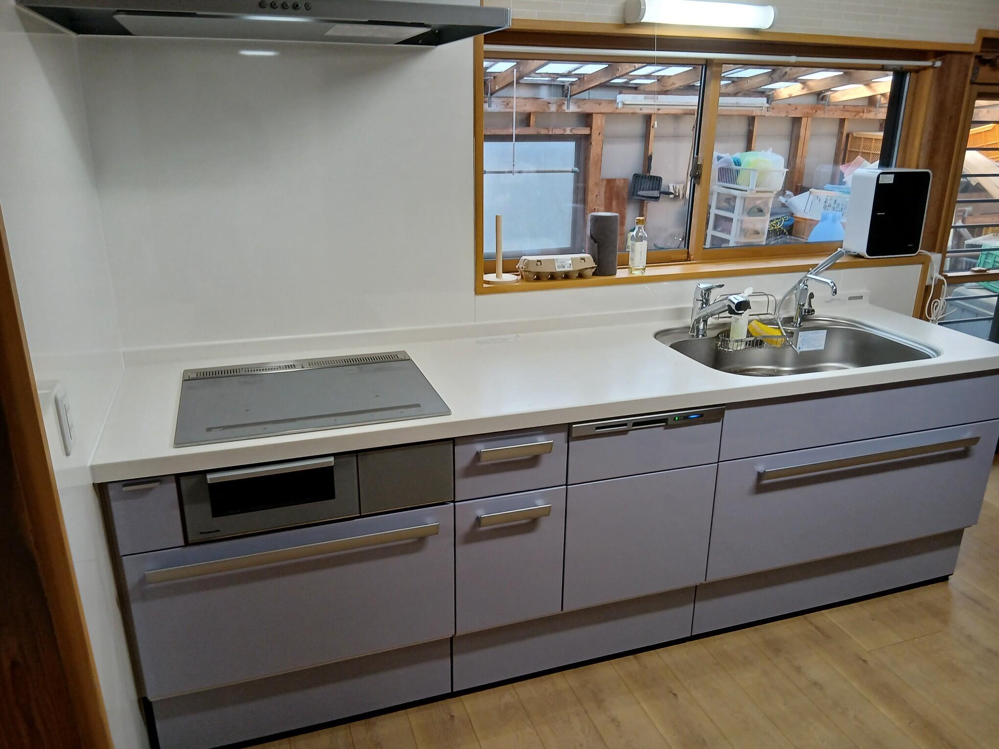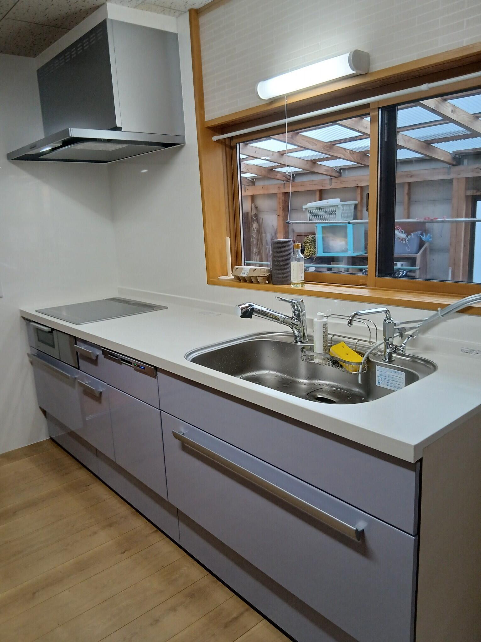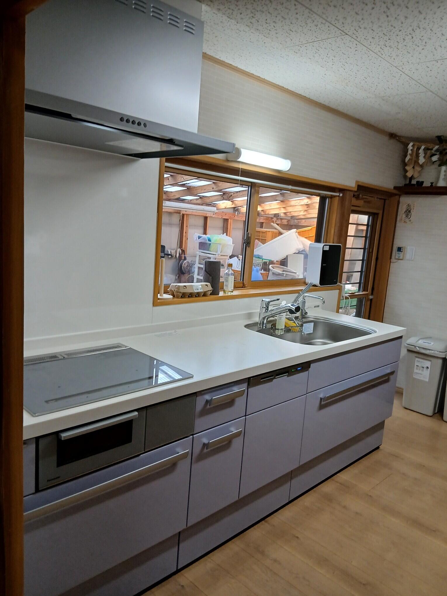 物が多く寒いキッチンをリフォームしました。収納しやすいシステムキッチンに取り換え、タイル壁をキッチンパネルに張り替えお手入れもしやすくなりました。
