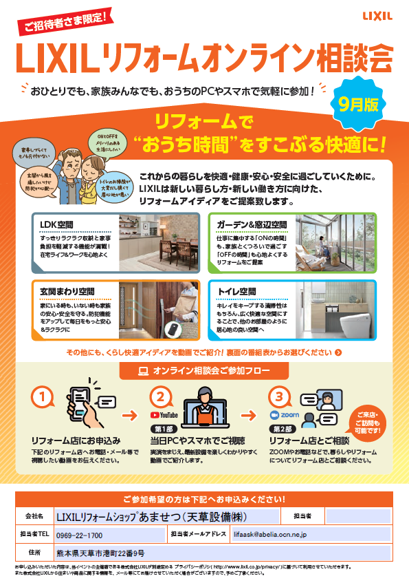 詳しくは、LIXILリフォームショップあませつまでお問い合わせください。
