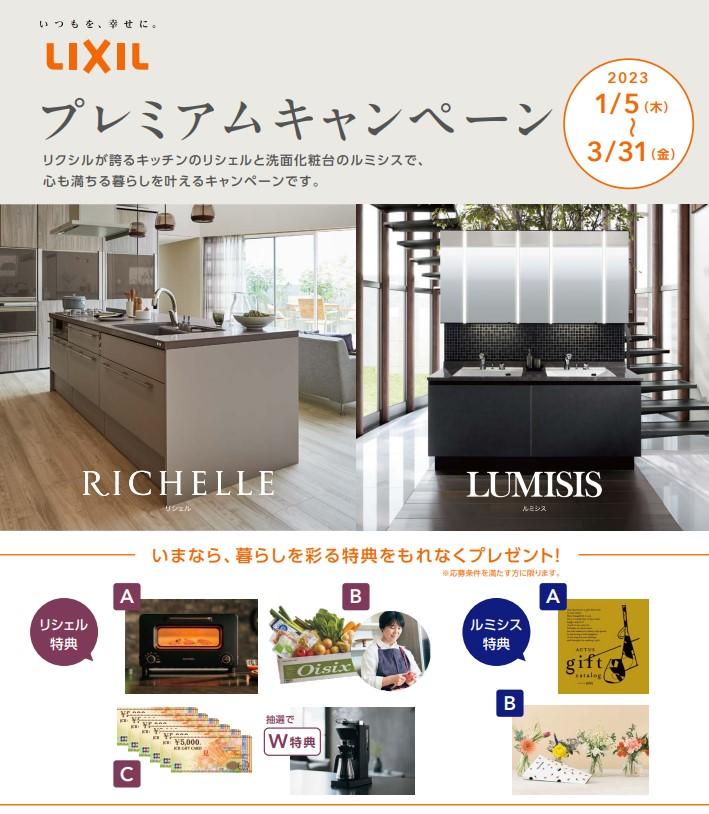 リクシルが誇るキッチンのリシェルろ洗面化粧台のルミシスをお選びいただくと