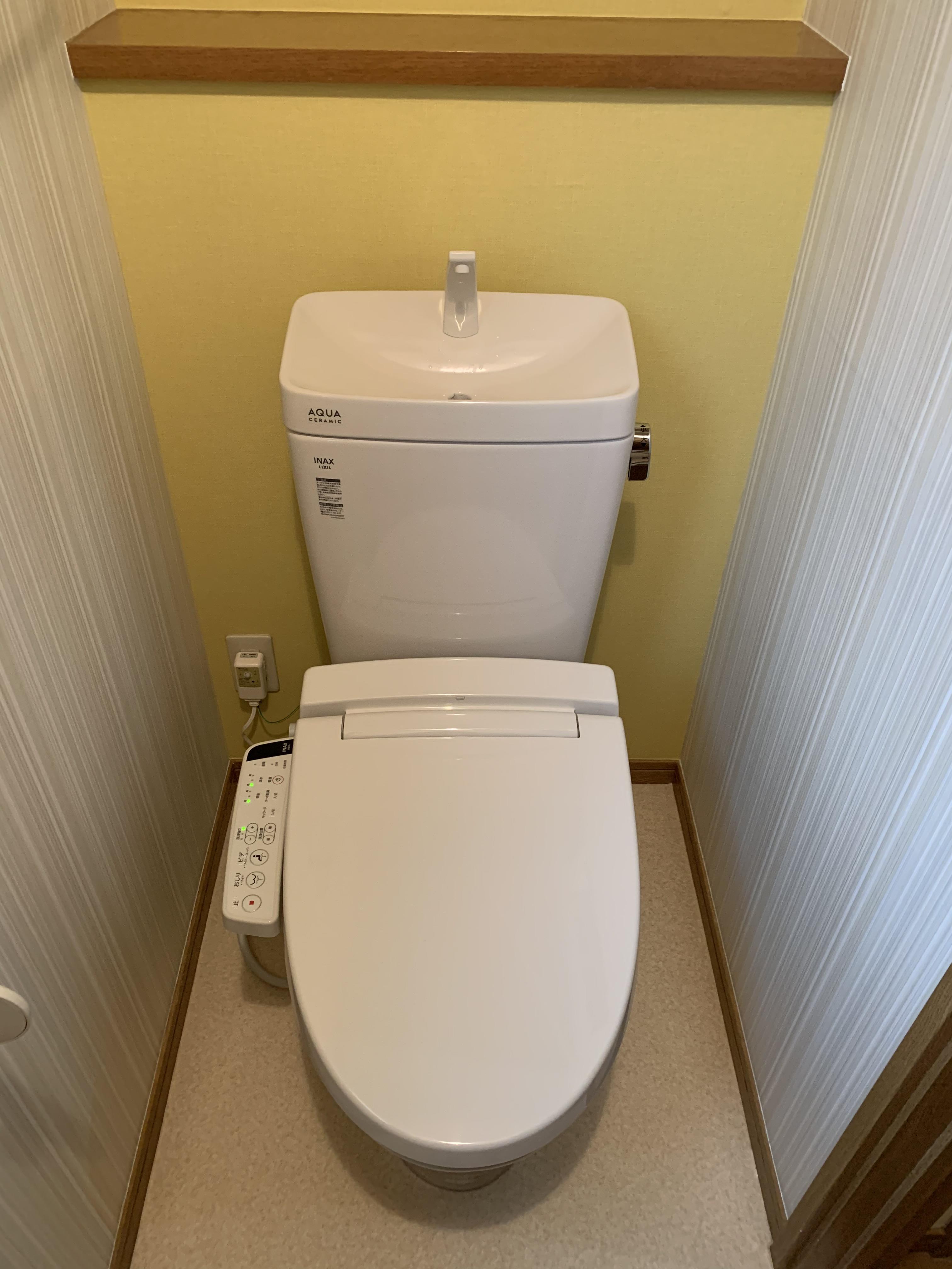 トイレが古くなってきたため、トイレのお取替えに合わせて、クロスの貼り替えを行いました。一面黄色のアクセントクロスを採用したことで、おしゃれで明るい空間になりました。(約20万円)
