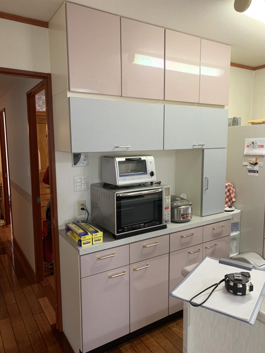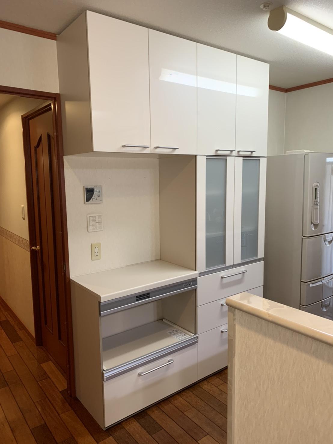 使い勝手が悪かったため、家電収納付の背面収納にお取替えしました。(参考工事価格 約35万円)