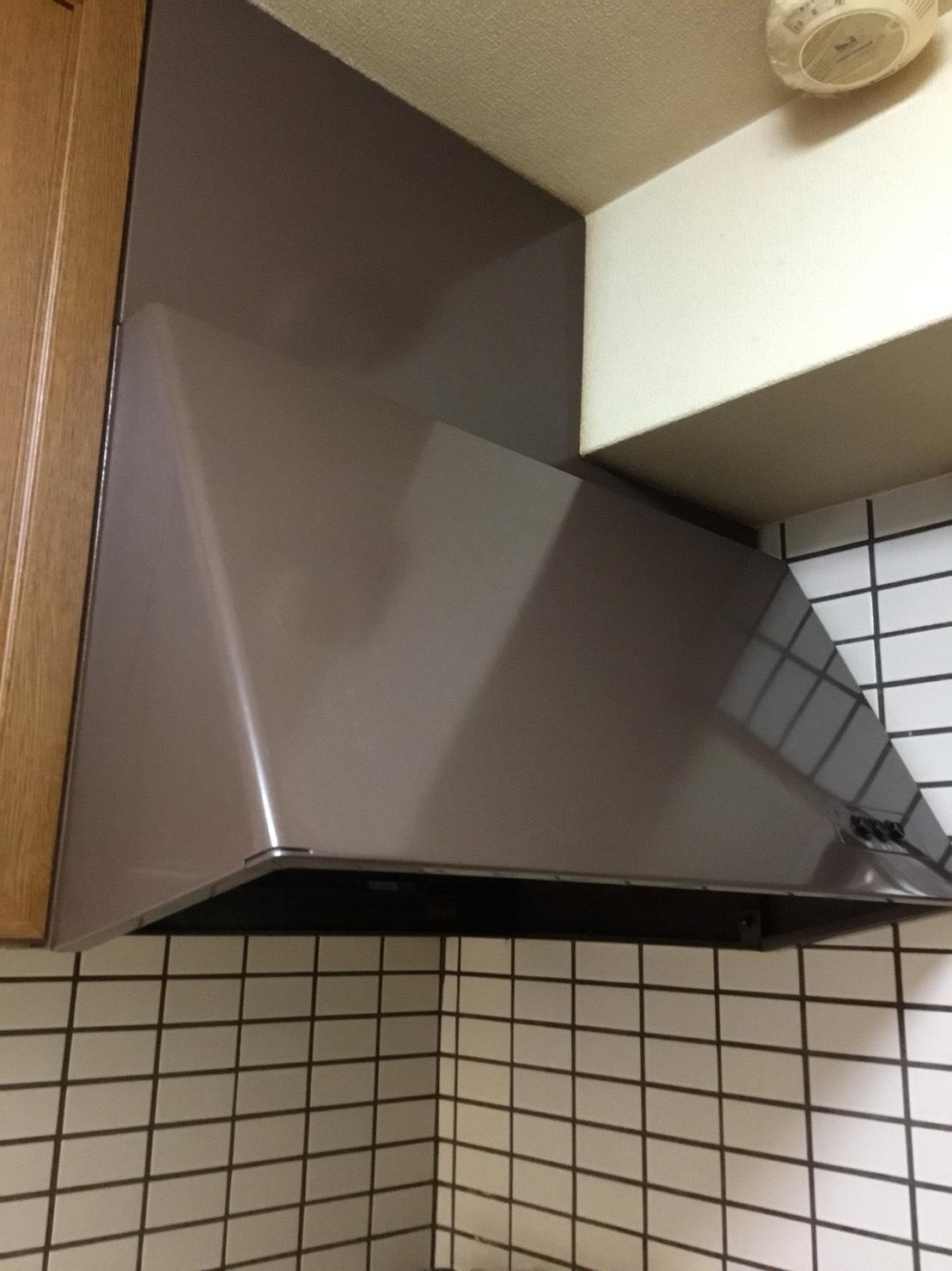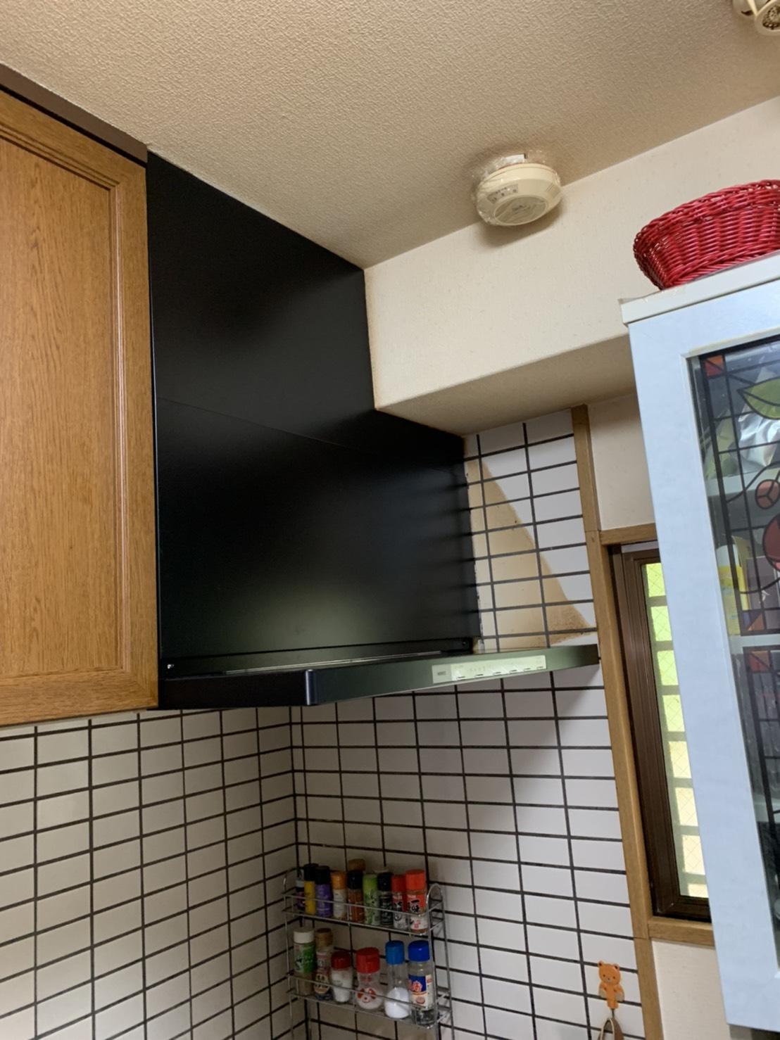 レンジフードをお取替えしました。スリムタイプにしたことでスッキリとした空間になりました。お手入れが簡単なタイプを採用しました。