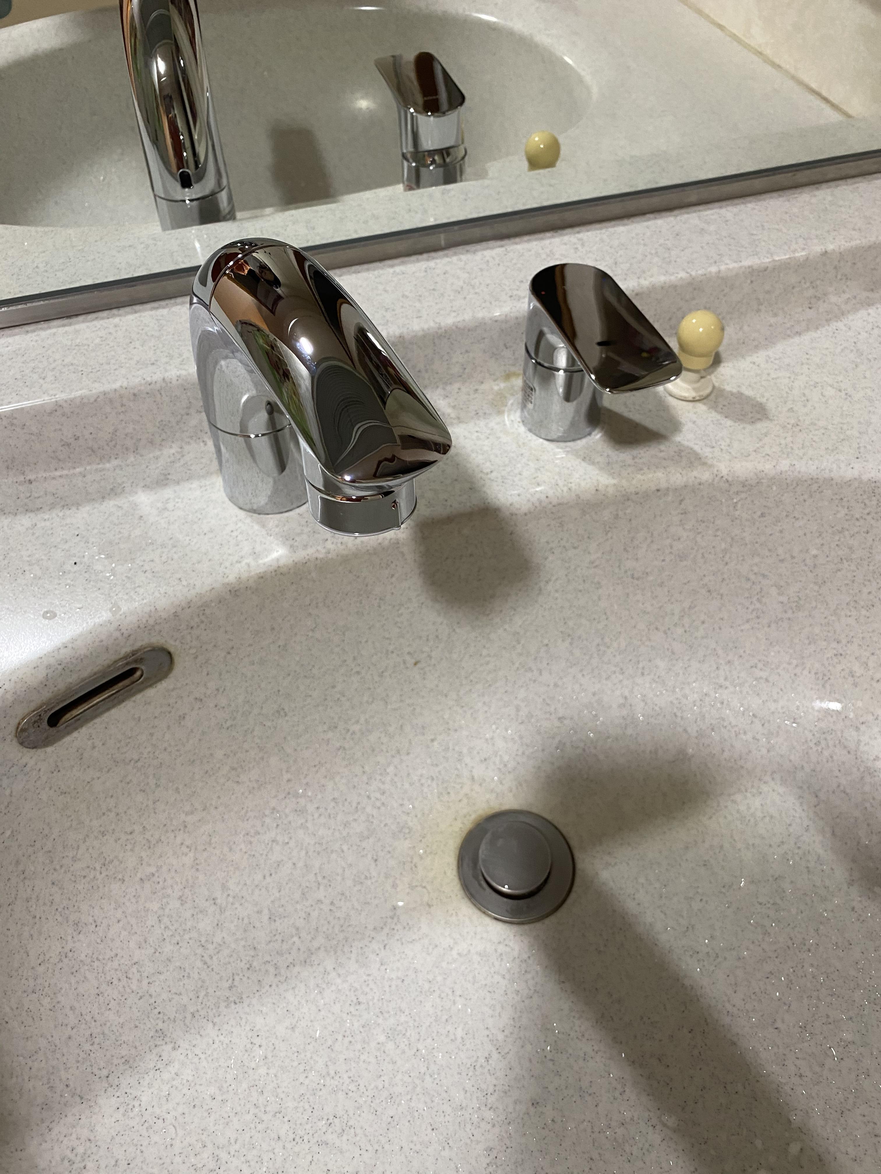 洗面化粧台の水栓金具を交換しました。スマートな形状でメッキタイプの水栓を採用したことで、スッキリとした印象になりました。
