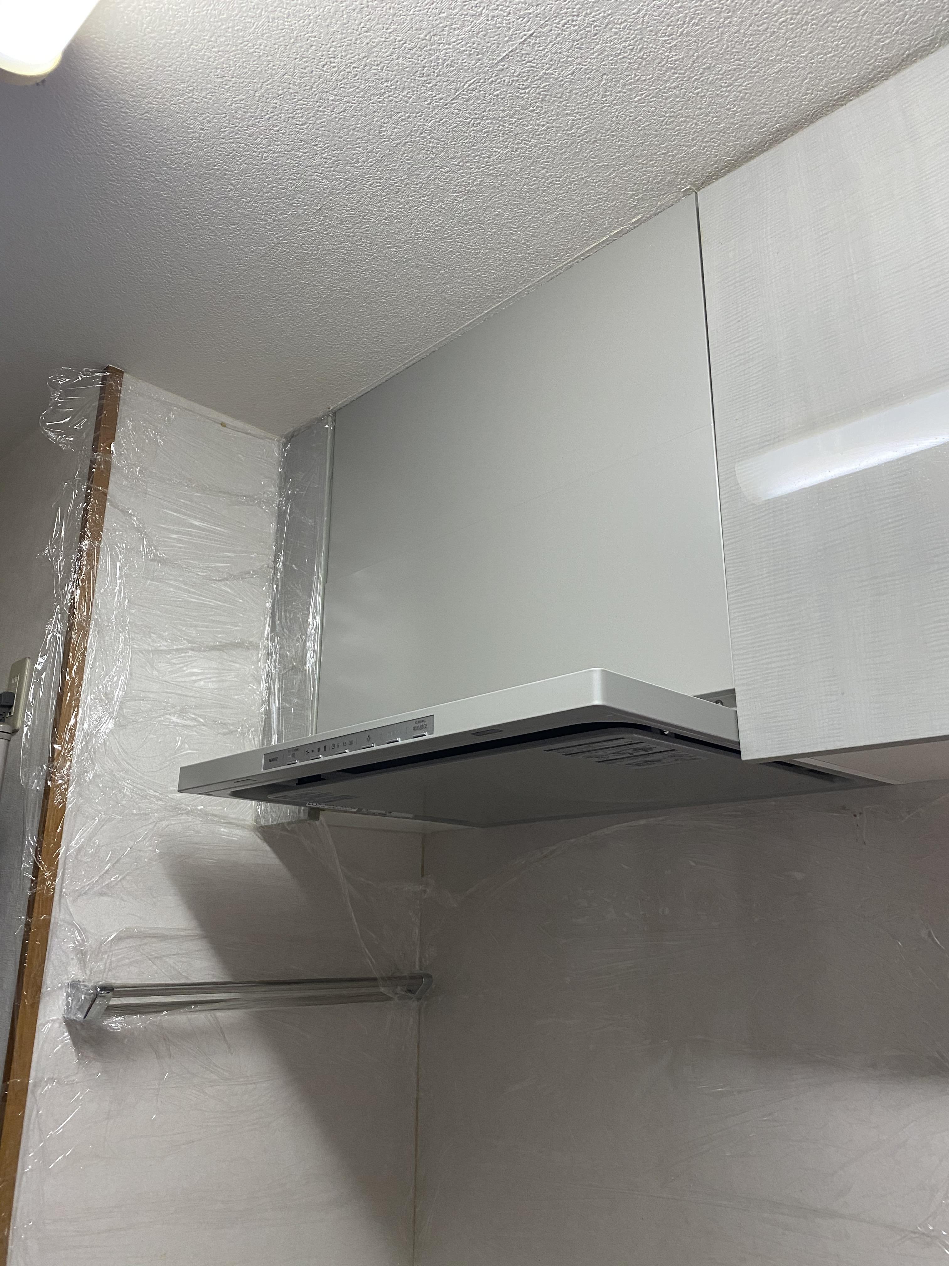 レンジフードをお取替えしました。ブーツ型からスリムタイプにしたことでスッキリとした空間になりました。