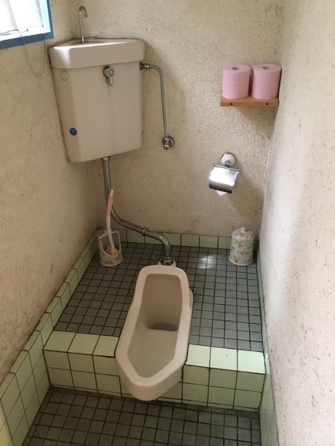 和式トイレから洋式トイレにリフォームしました。合わせて壁面にパネルを貼ったことでお掃除がしやすく汚れにくいキッチンパネルを貼りました。