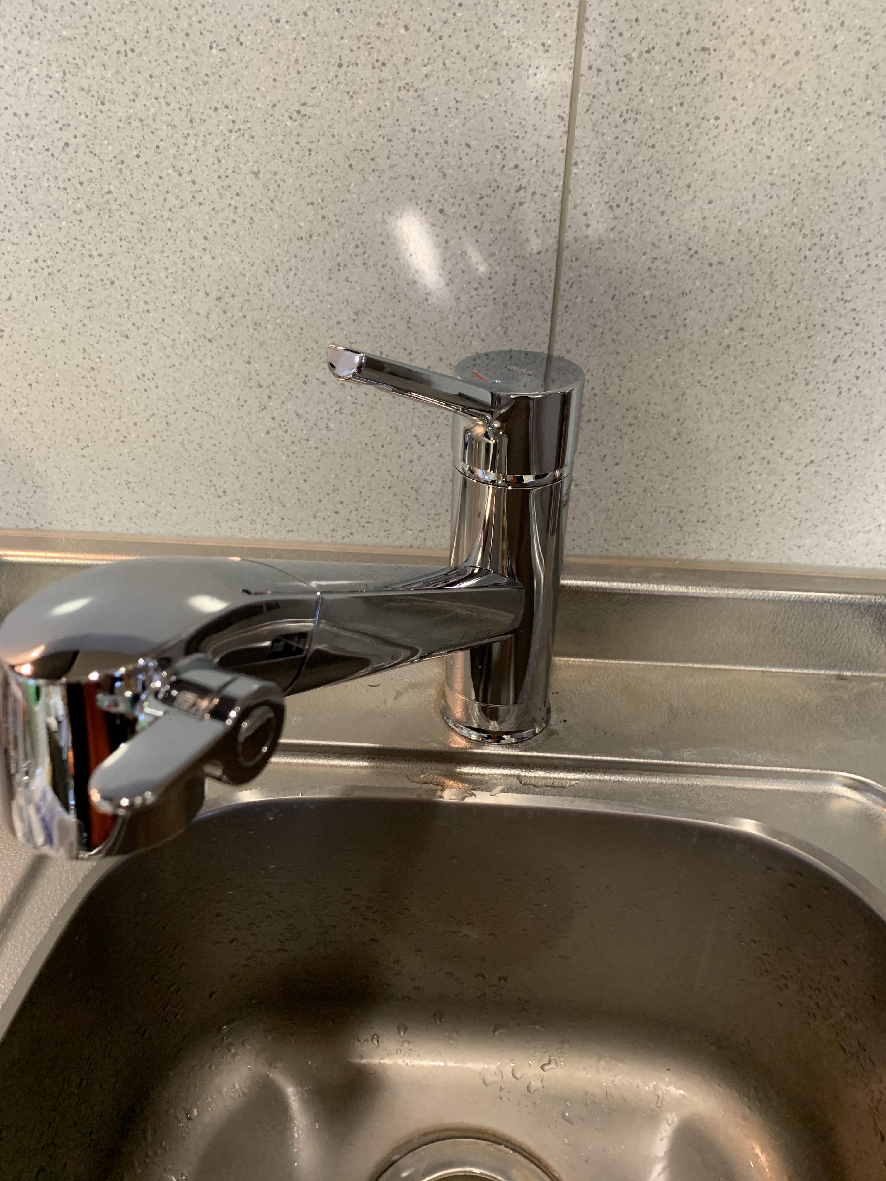 キッチンの水栓金具をお取替えしました。 以前は蛇口の吐水口に浄水器をつけていましたが、 今回お取替えにあたって浄水器内蔵の水栓にしました。 見た目もスッキリ、カートリッジの交換もラクラクです♪ (参考工事価格 約4万2千円)