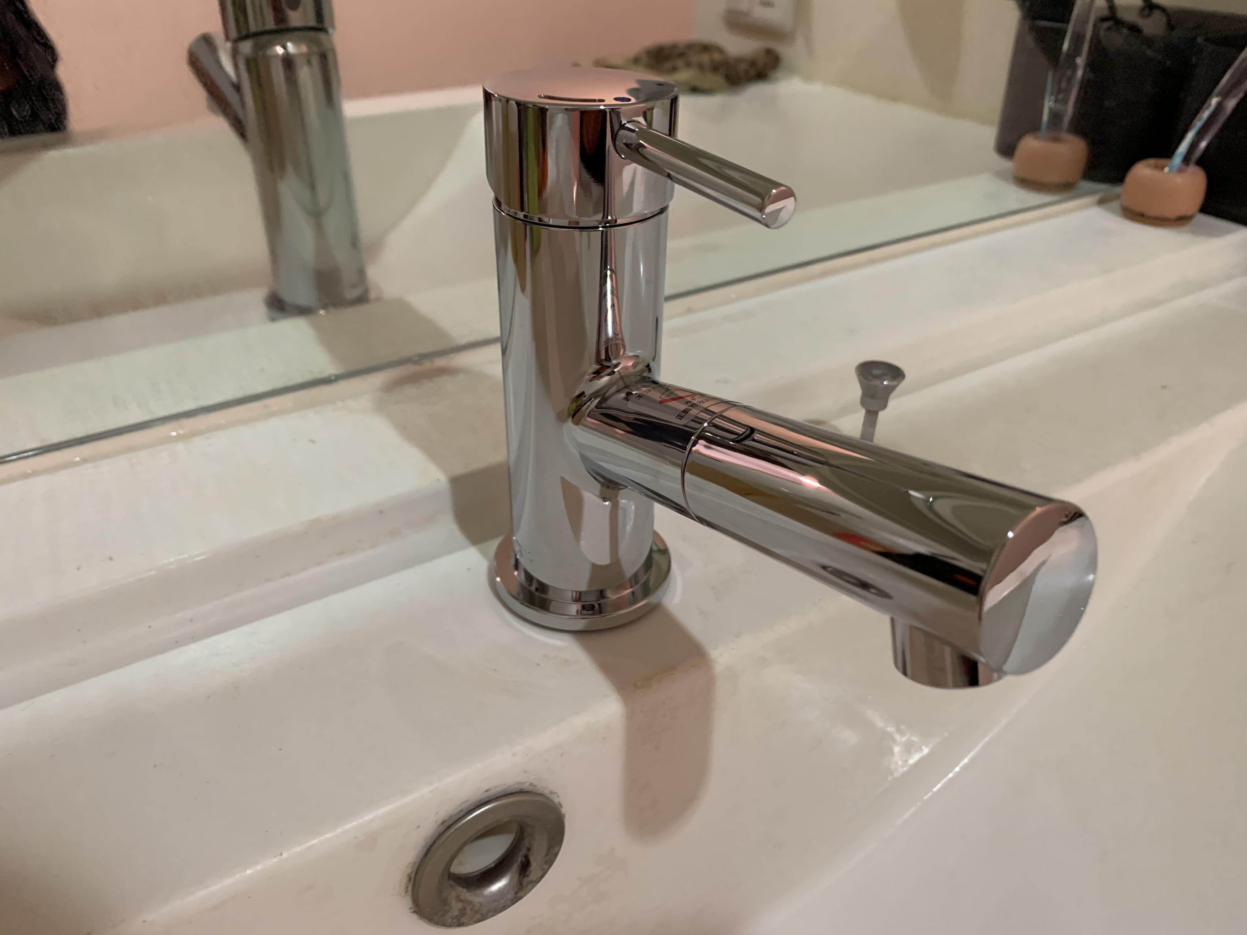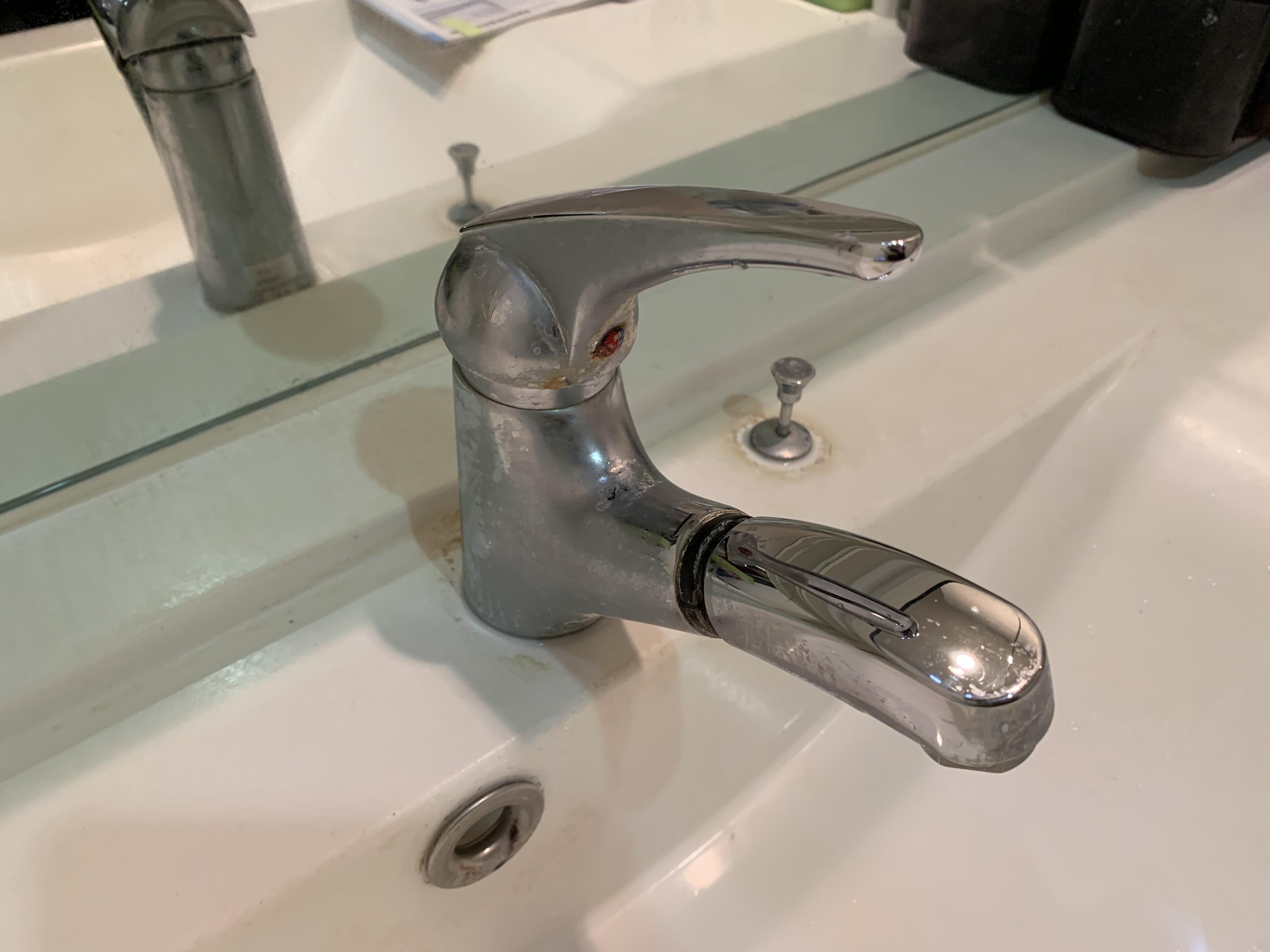 洗面化粧台の水栓金具をお取替えしました。 スマートでお掃除のしやすいシリーズを採用しました。