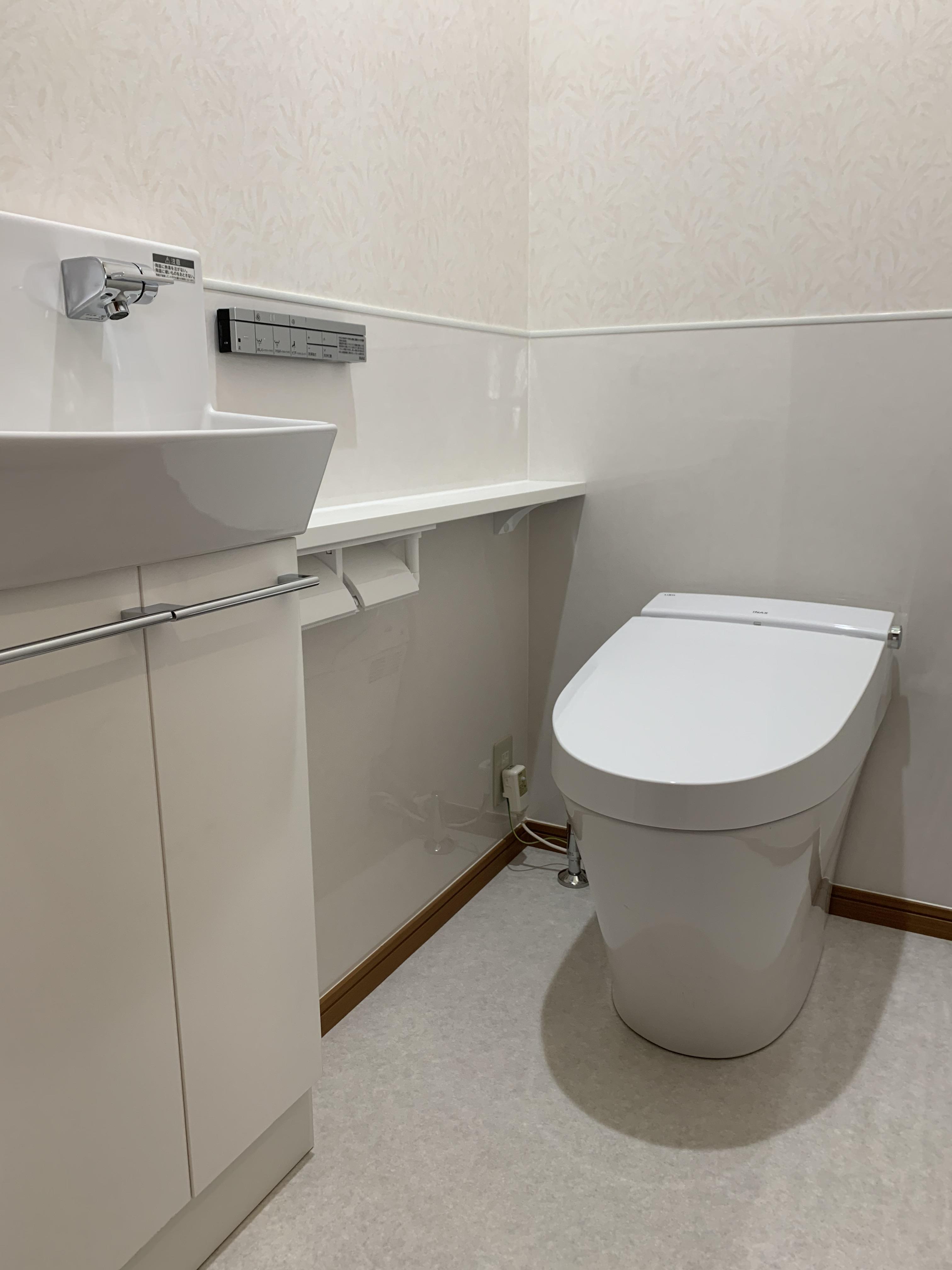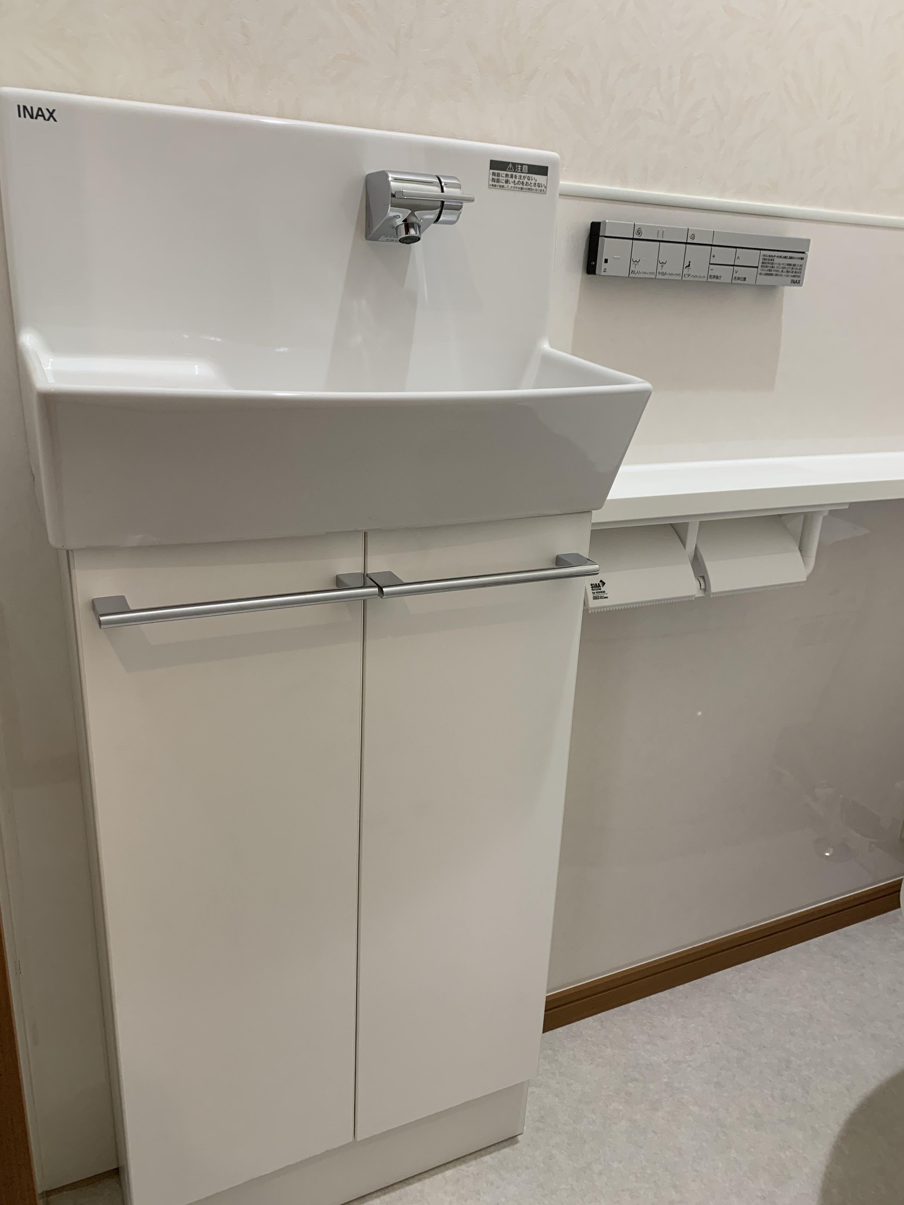 LIXL製サティスS、手洗器をお取付しました。 空間全体を白で統一したことでスッキリと清潔感のある空間になりました。