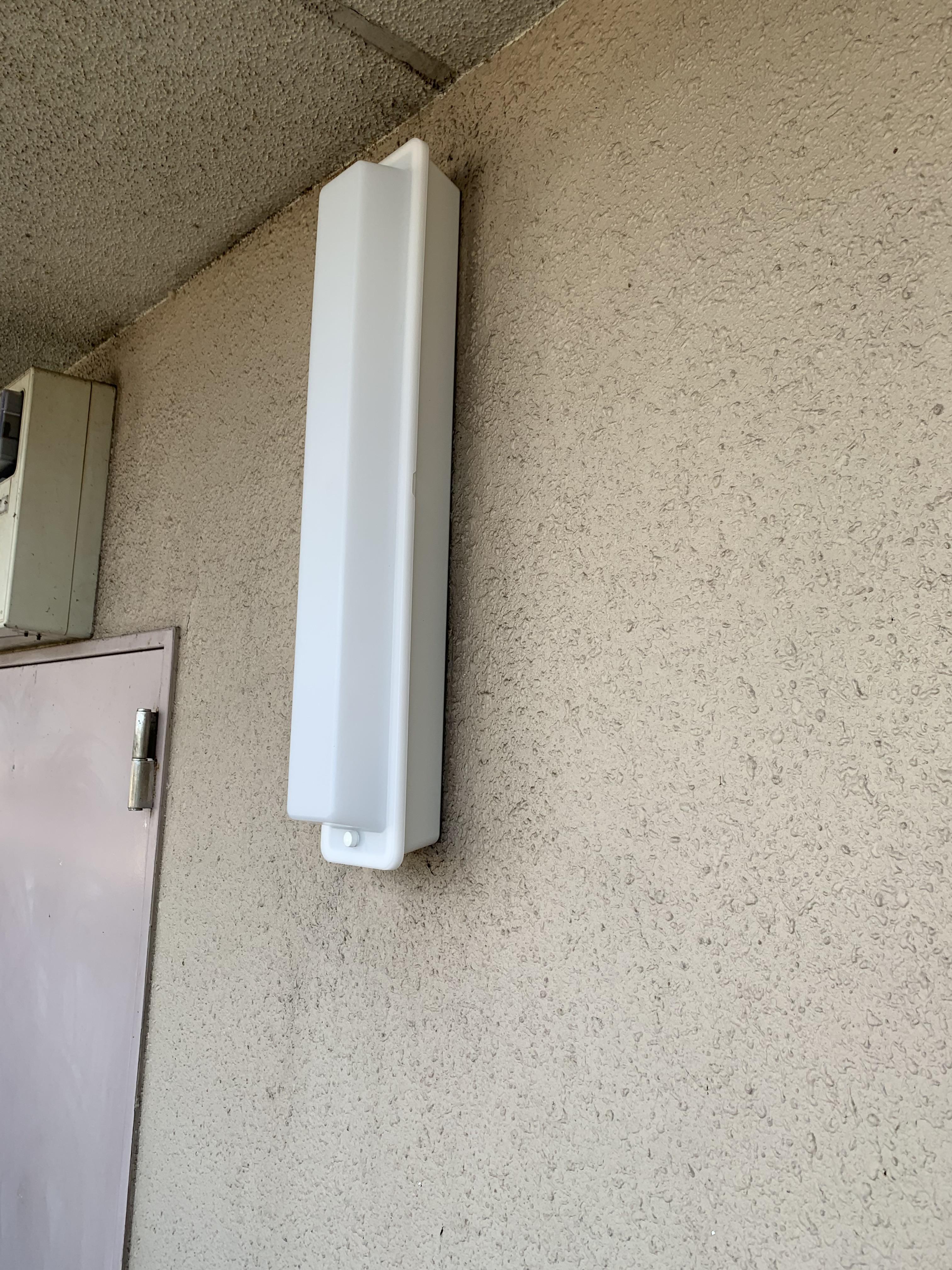 マンション通路の照明が外部からの衝撃で割れた為、お取替えしました。