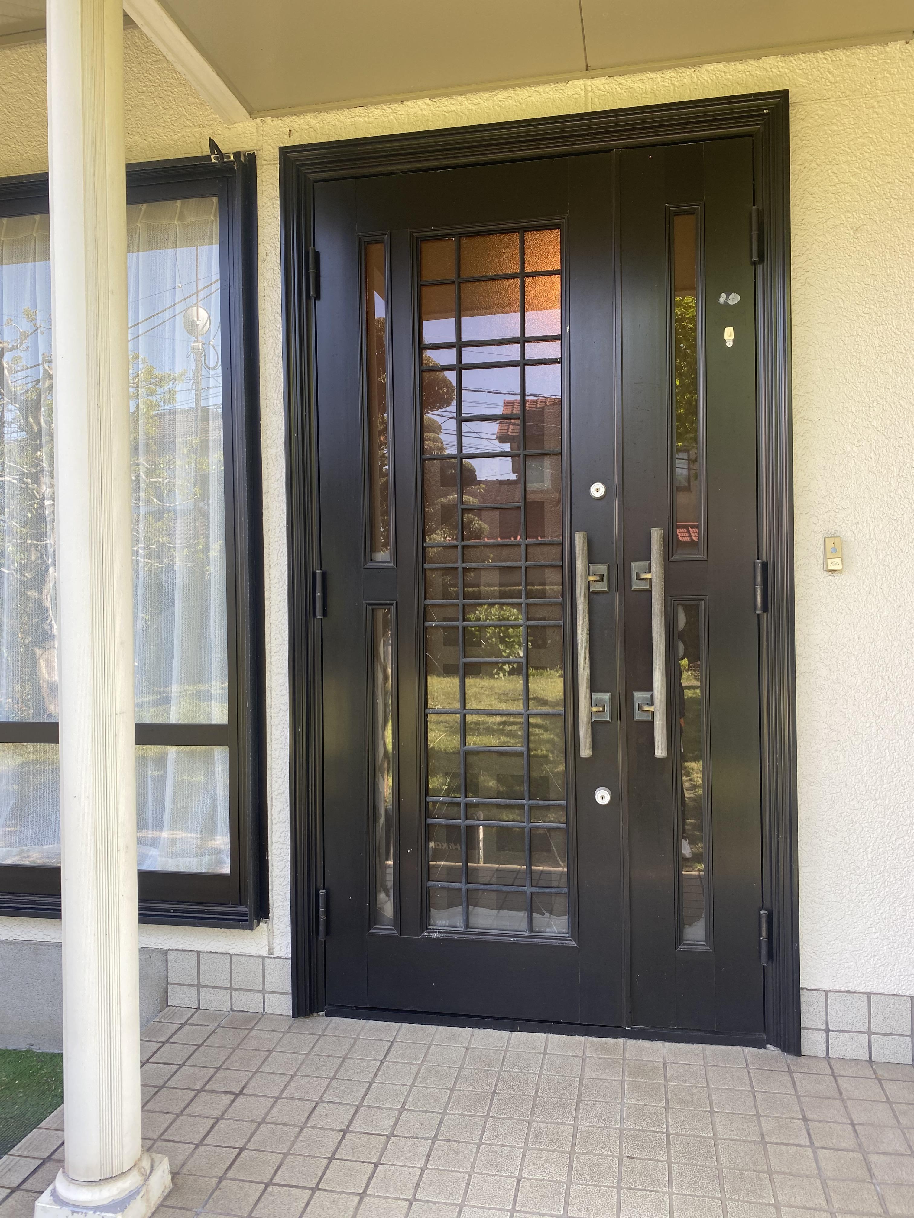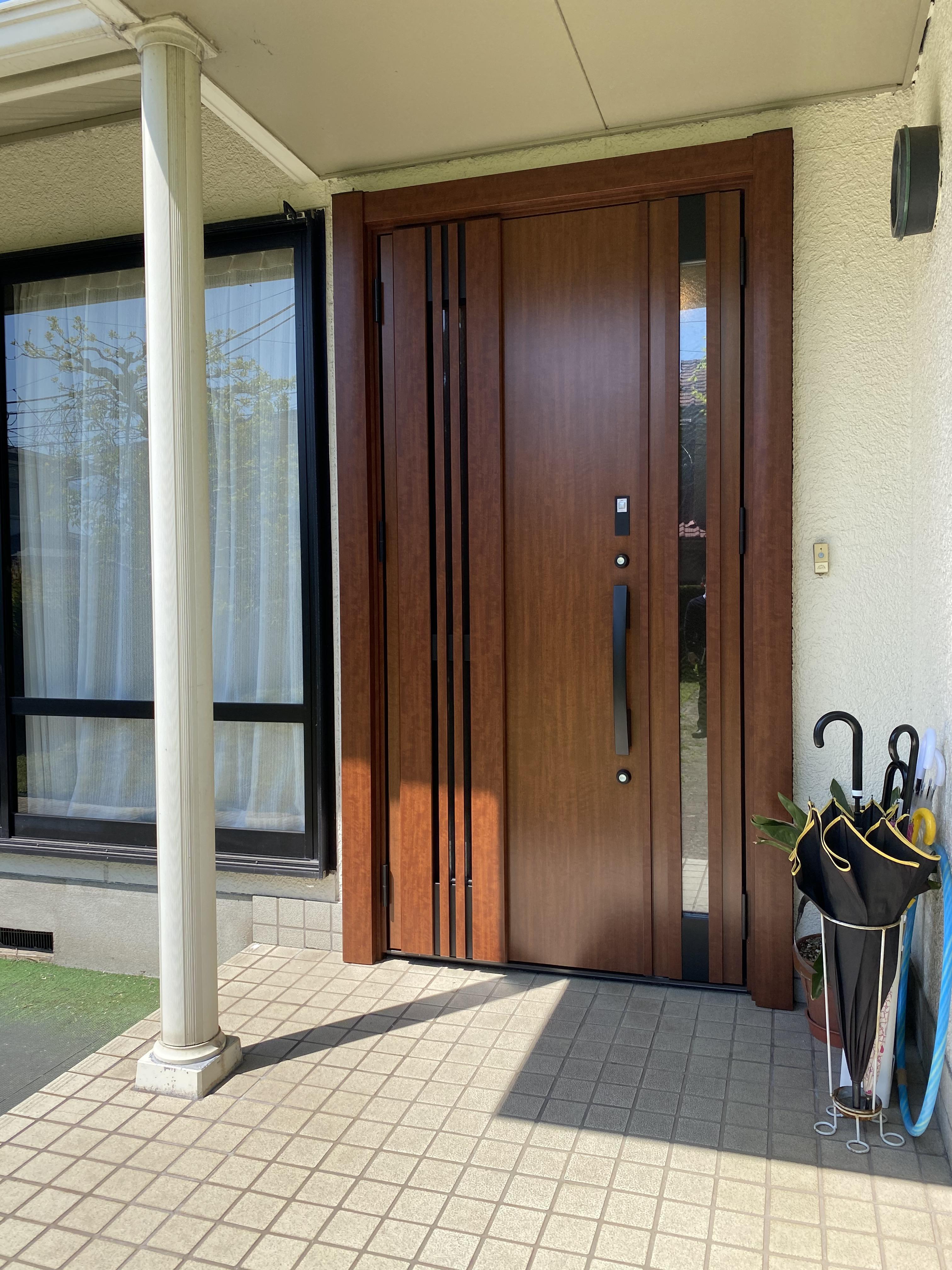 玄関ドアをお取替えしました。 採風タイプをお選びいただきましたので、 扉や鍵を閉めたまま換気が出来るようになりました。 防犯上も安心です。