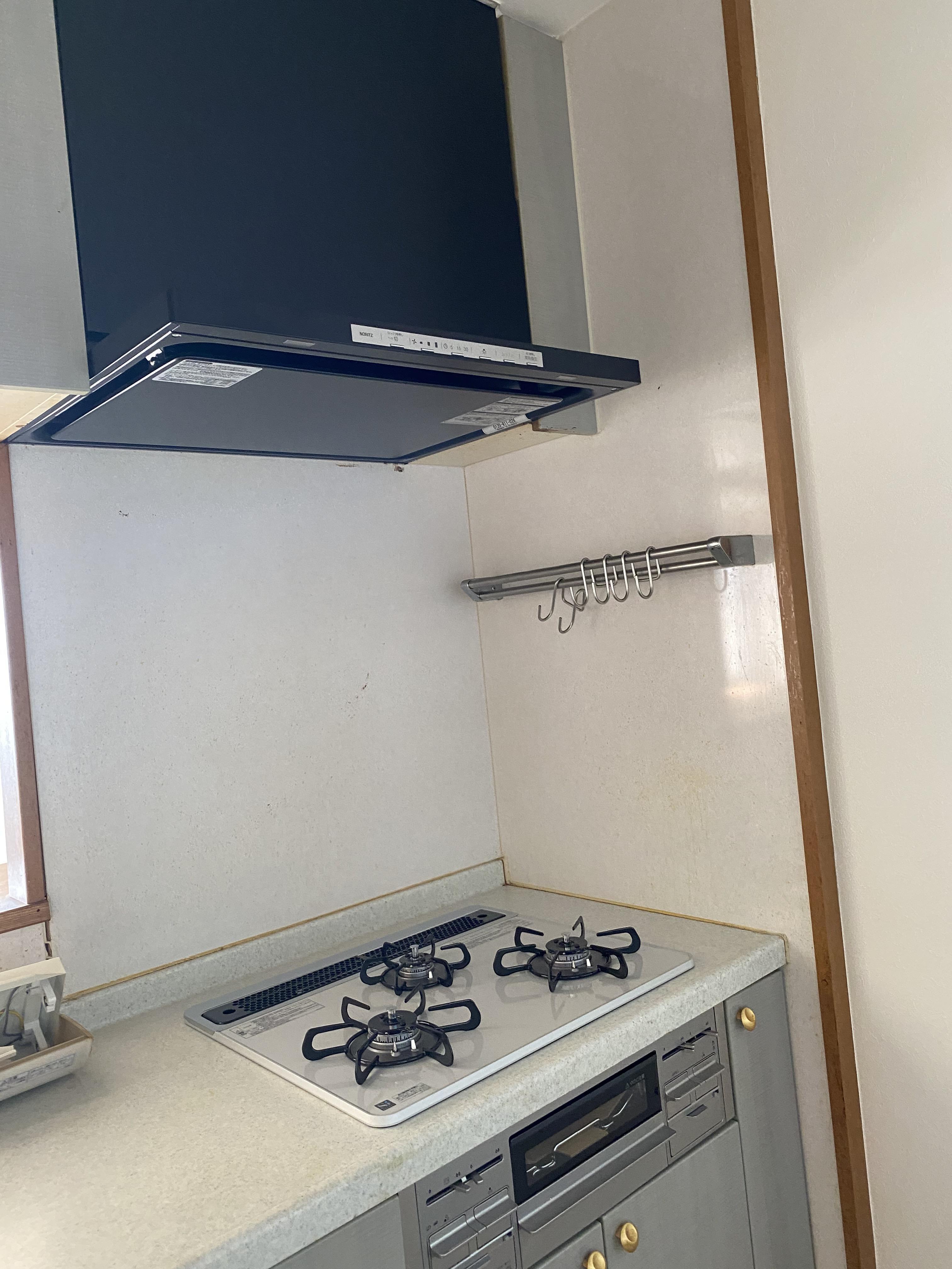 レンジフードとガスコンロをお取替えしました。 レンジフードは、普段のお手入れはフラットな整流板を拭くだけのノンフィルタータイプです。 ガスコンロはシンプルでお掃除しやすいシリーズをお選びいただきました。