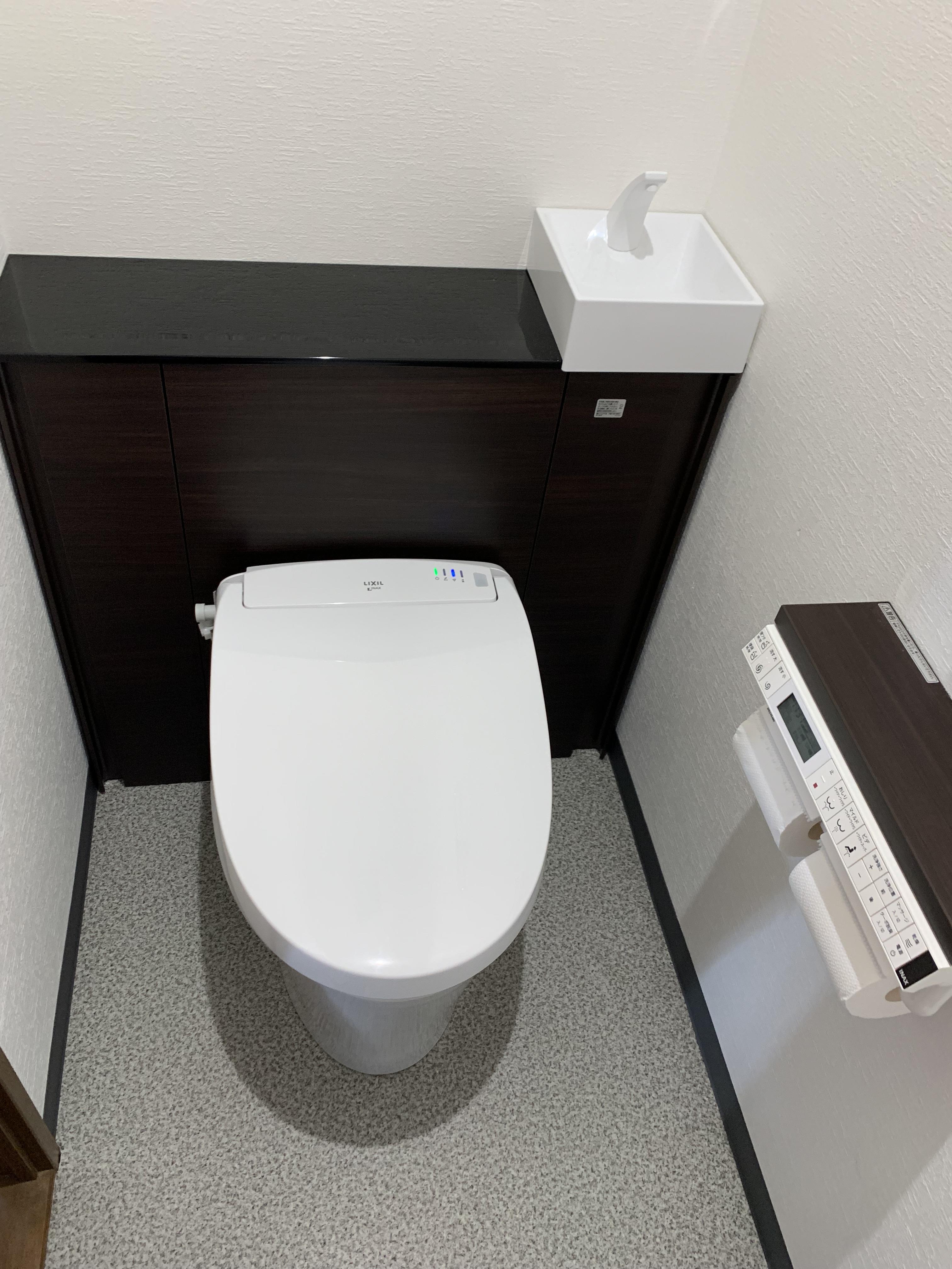 トイレのお取替えと、全面クロス、 CFシートを貼替えを行いました。 今回採用したリフォレは、 掃除用具をキャビネット内に収納できることが特徴です。 お掃除も楽々で見た目もスッキリしました。 (参考工事価格 約32万円)