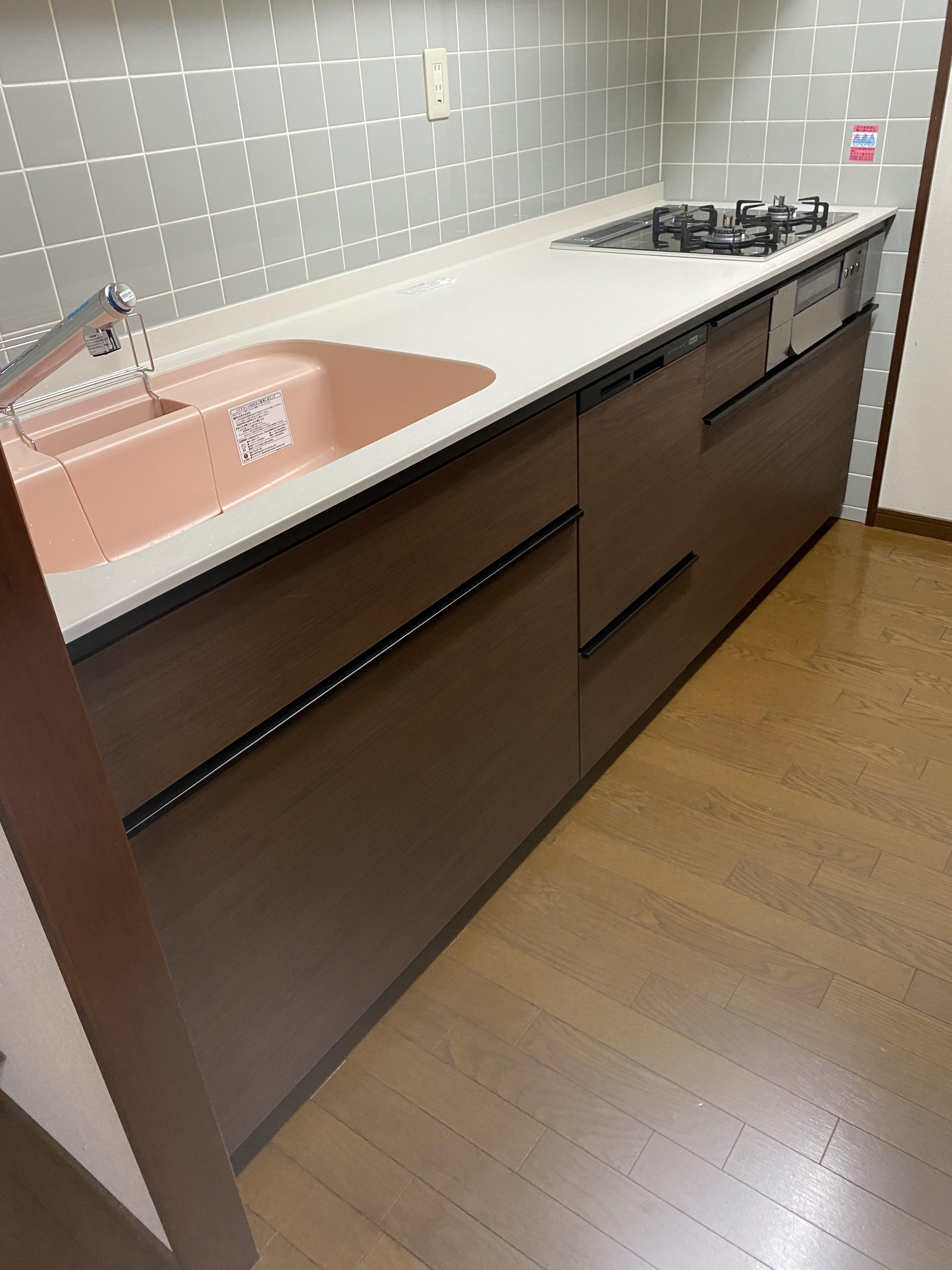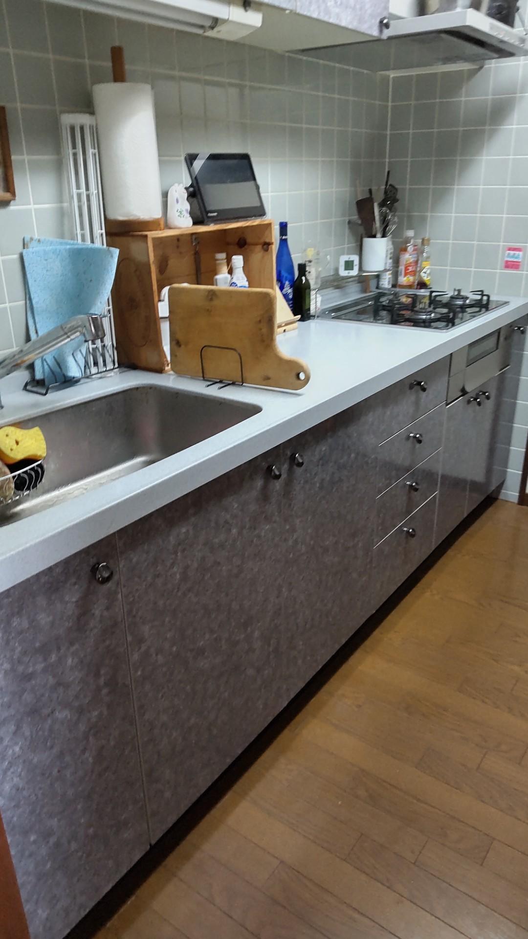 キッチンをお取替えしました。 今回は吊戸は残して下台のみのお取替えでしたが、 新たに食洗機を設置したため、家事軽減が期待できそうです。 (参考工事価格 約60万円)