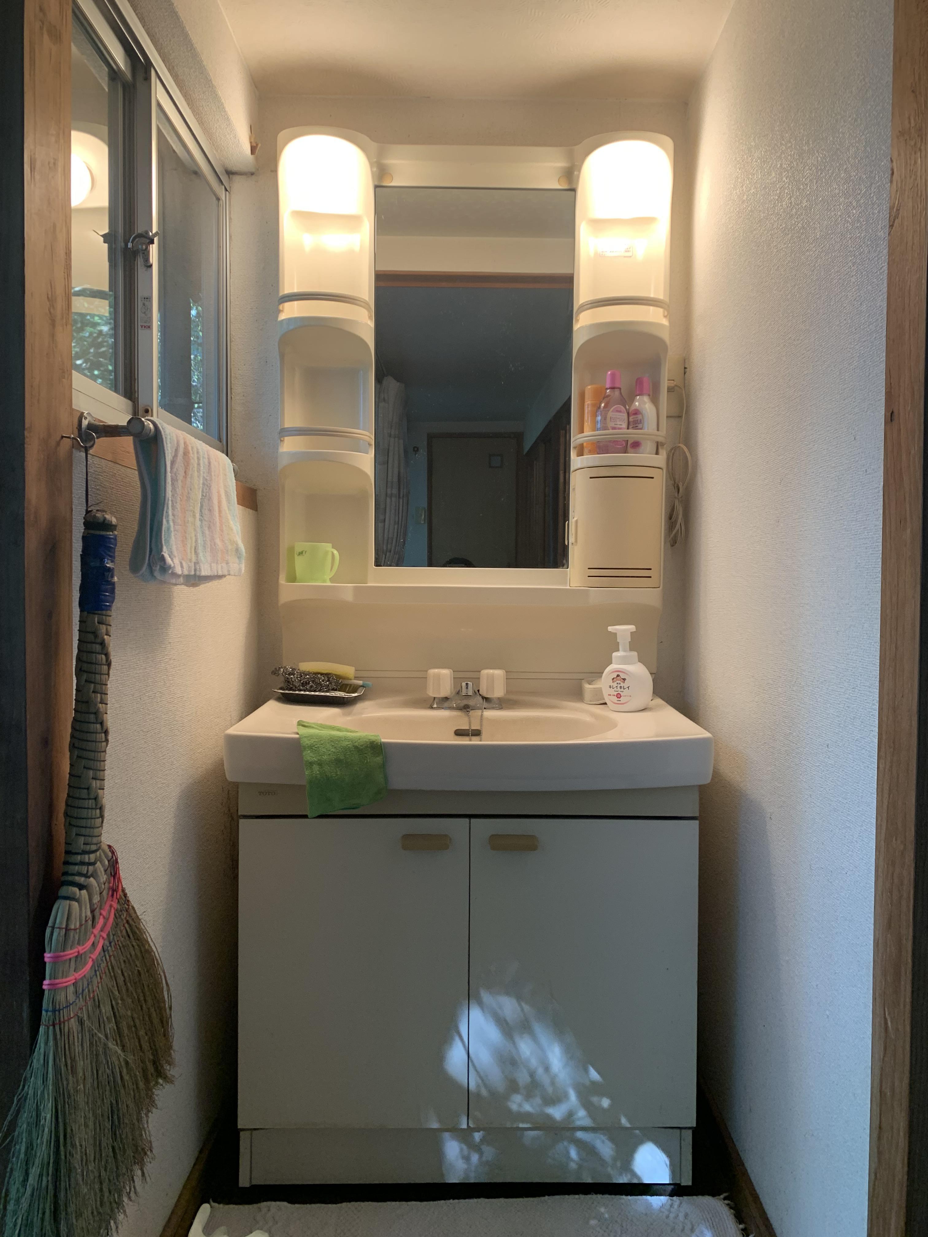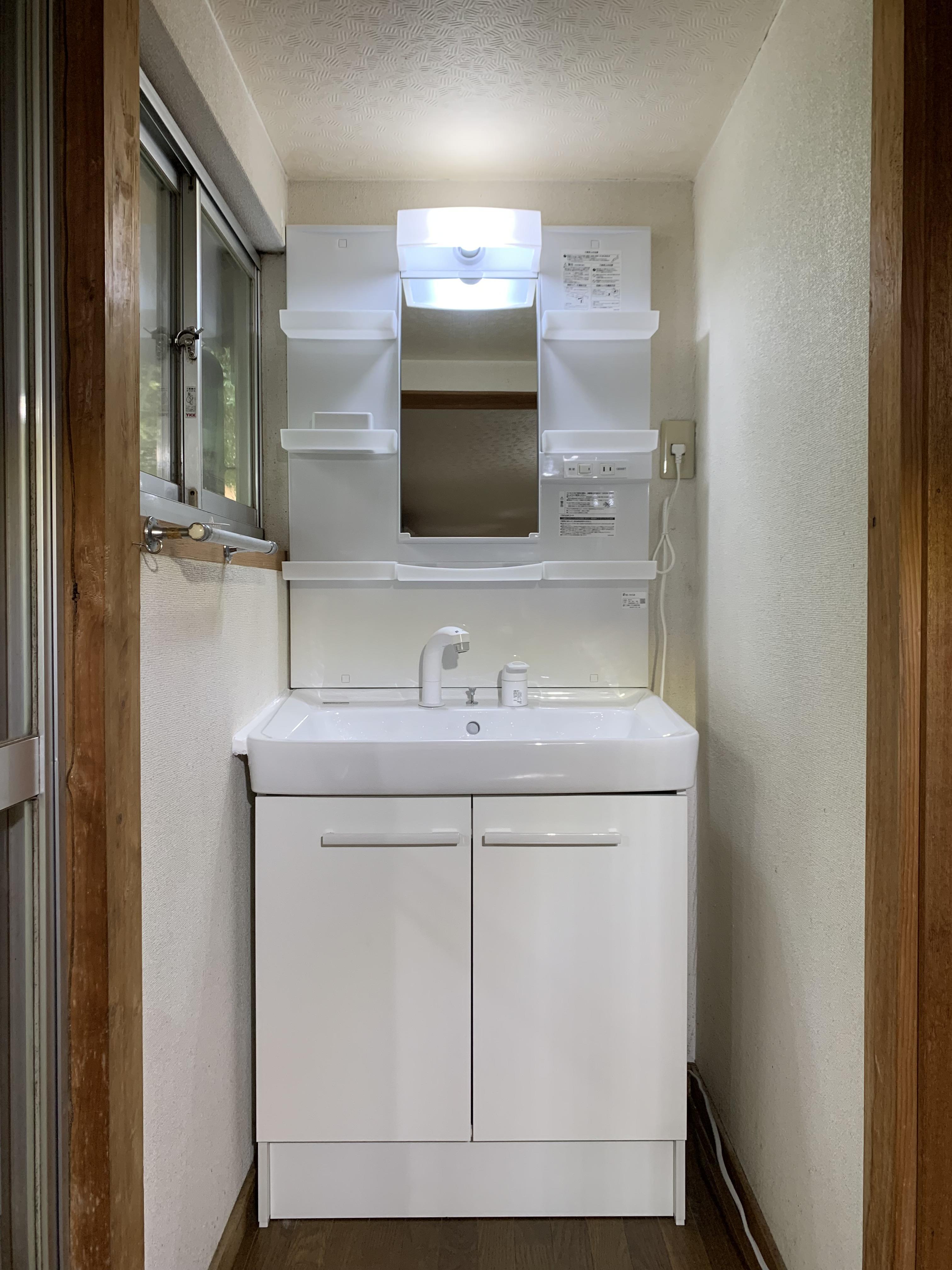 洗面化粧台をお取替えしました。 元々ご使用されていた洗面化粧台はお湯がきておらず水のみで使われていました。 ですので洗面化粧台お取付にあたって、小型の電気温水器を設置しました。 (参考工事価格 約21万円)