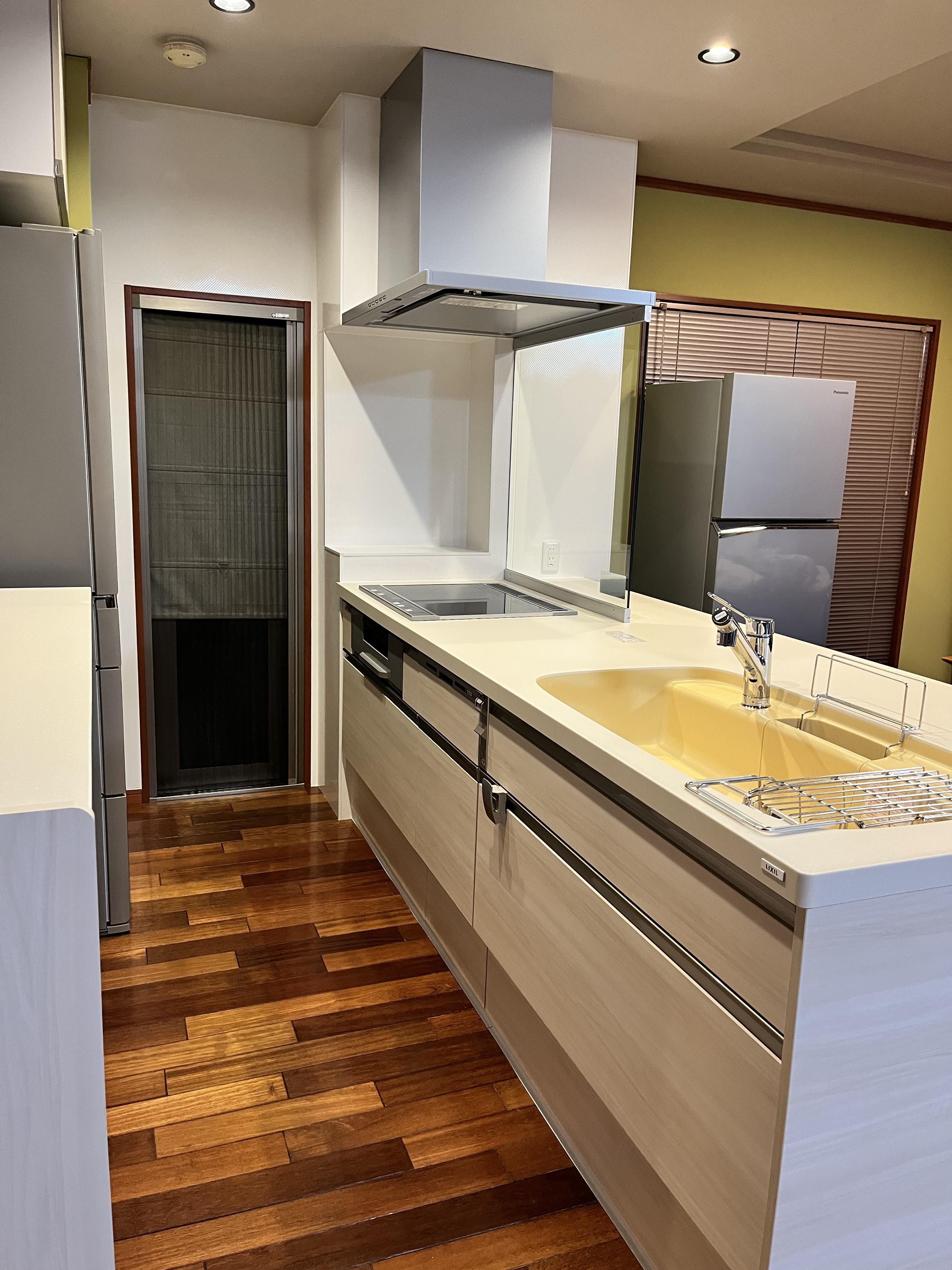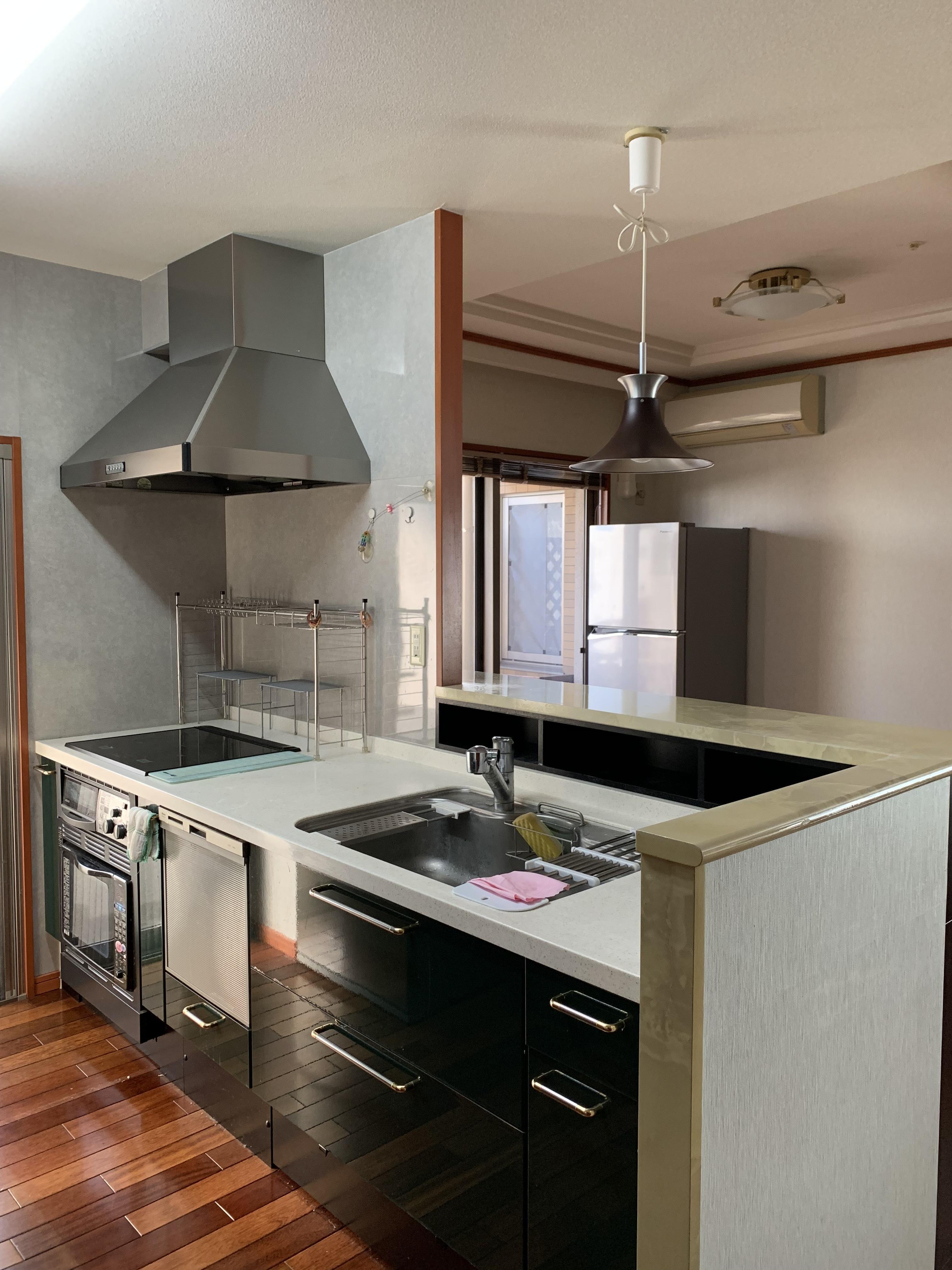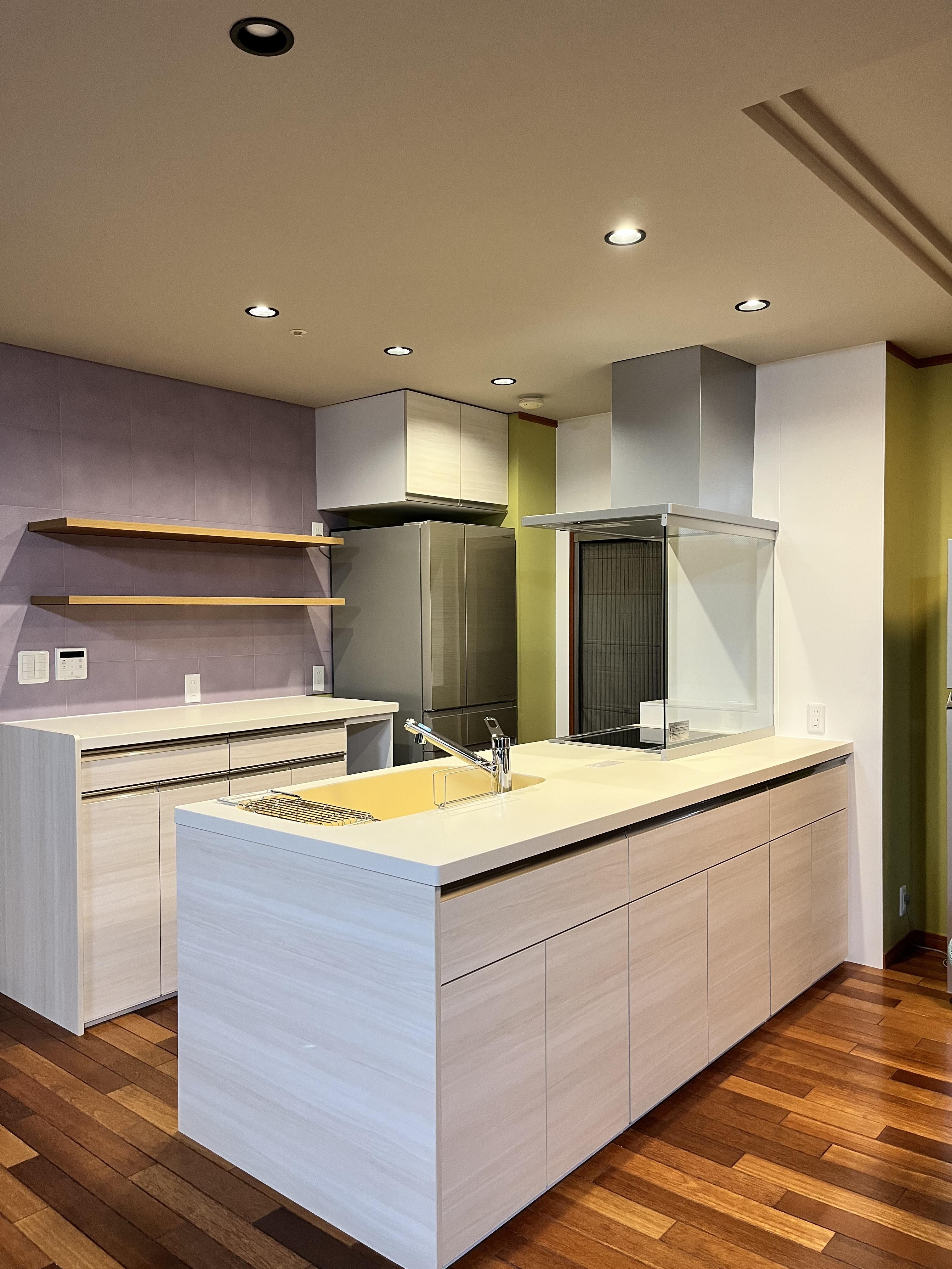 今回は周辺の壁を撤去して、フラットなペニンシュラ型のキッチン(LIXIL製 リシェルSI)にしました。
