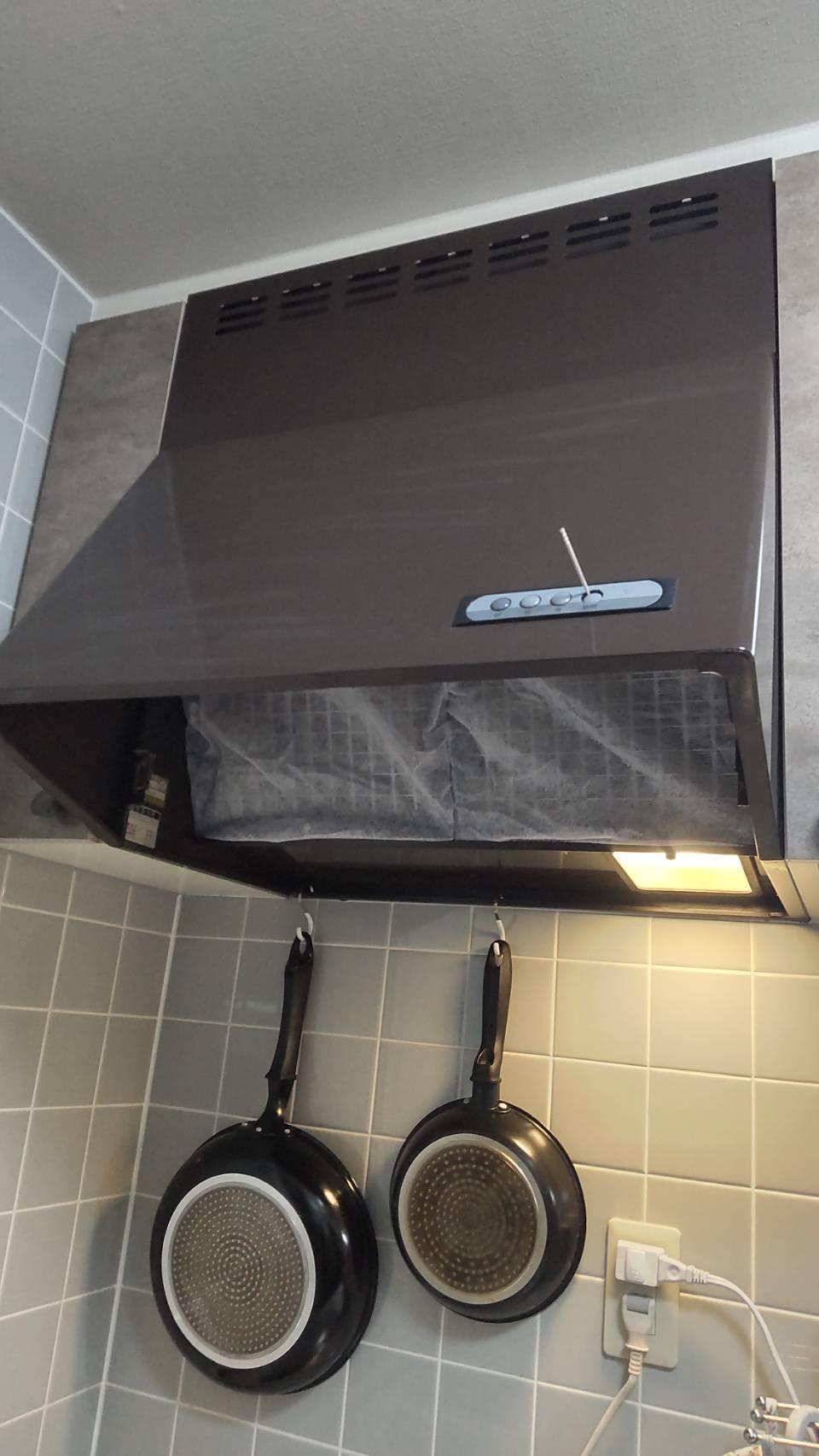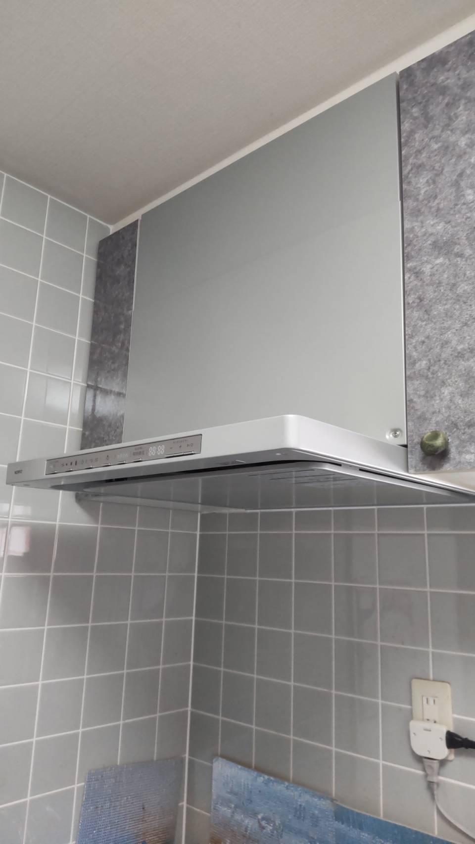 スリム型のレンジフードにお取替えしました。 ノンフィルタータイプでお掃除も楽々になりました。