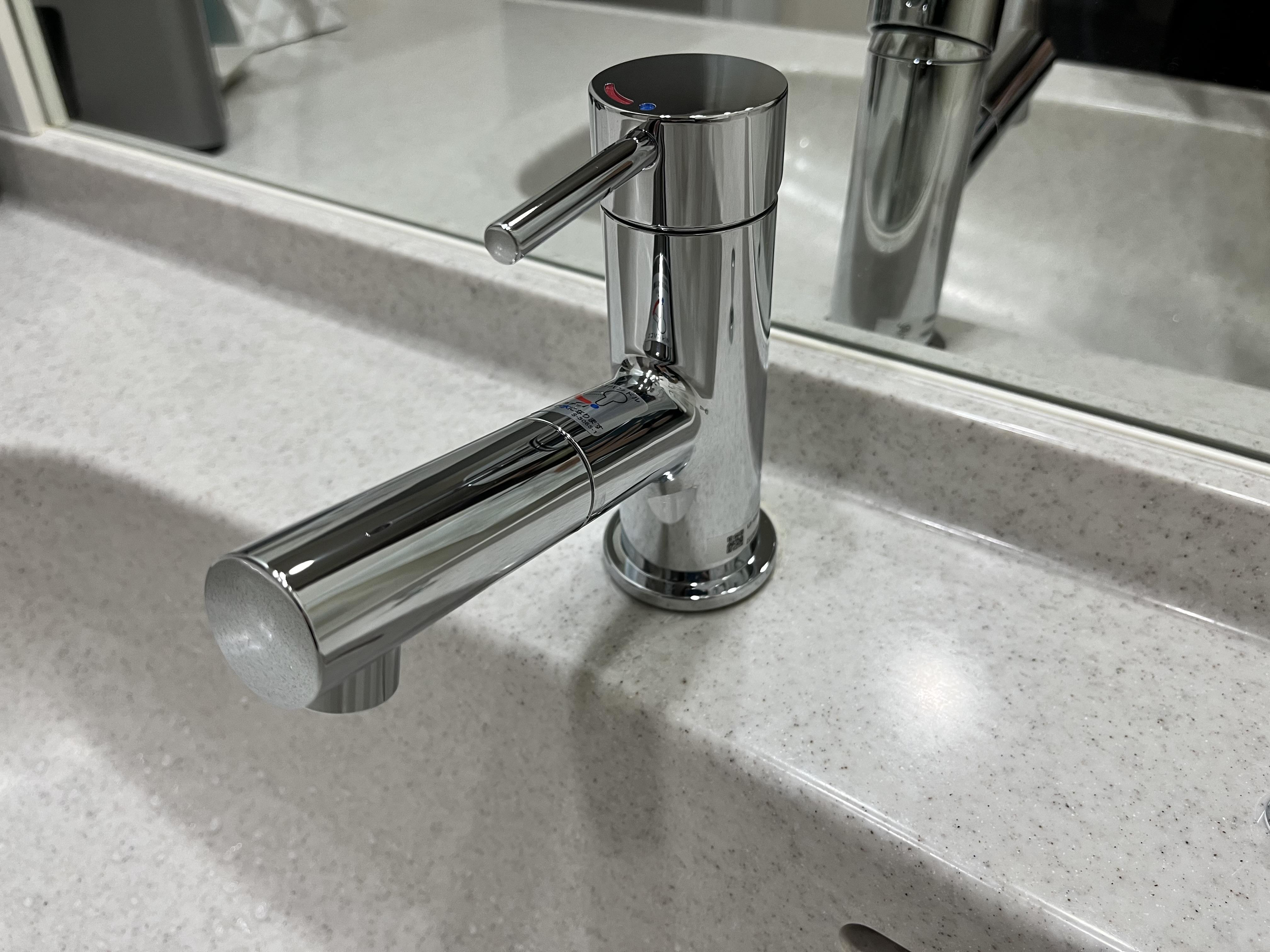 洗面化粧台の水栓金具をお取替えしました。 (参考工事価格 約6万円)
