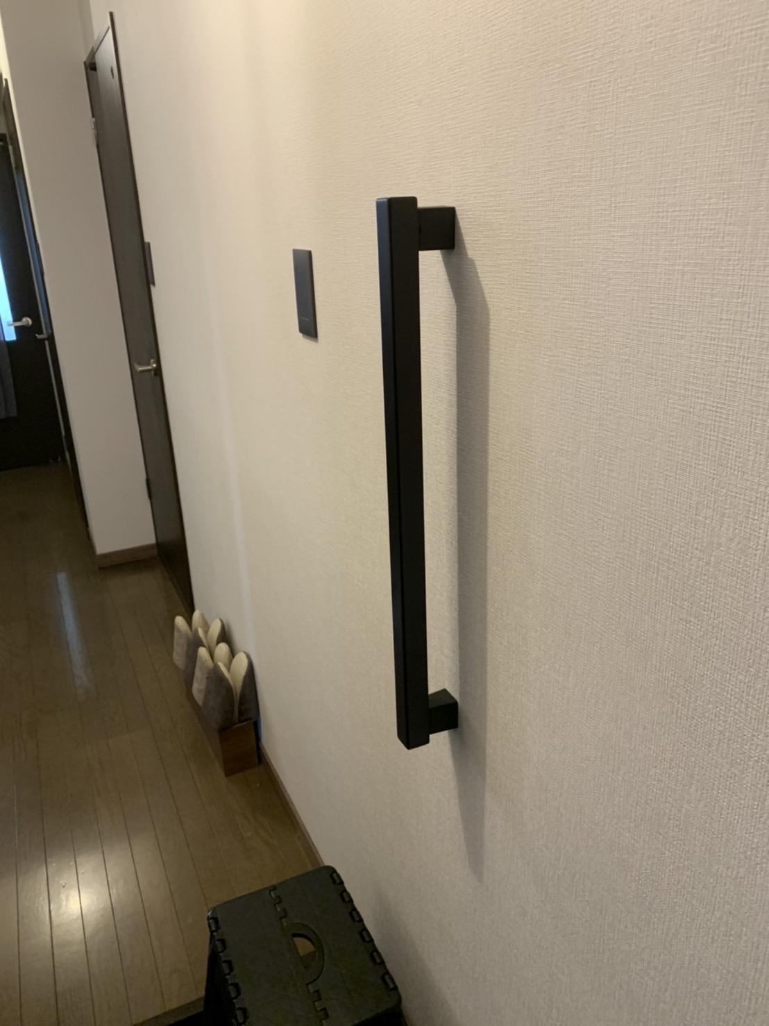 手すりを設置しました。 今回採用した手すりは、LIXIL製のラシッサDヴィンティア スクエアタイプです。 しっかりと握れる30mm角の手すり、そしてインテリアとして空間に馴染むスタイリッシュなデザインが特徴です。