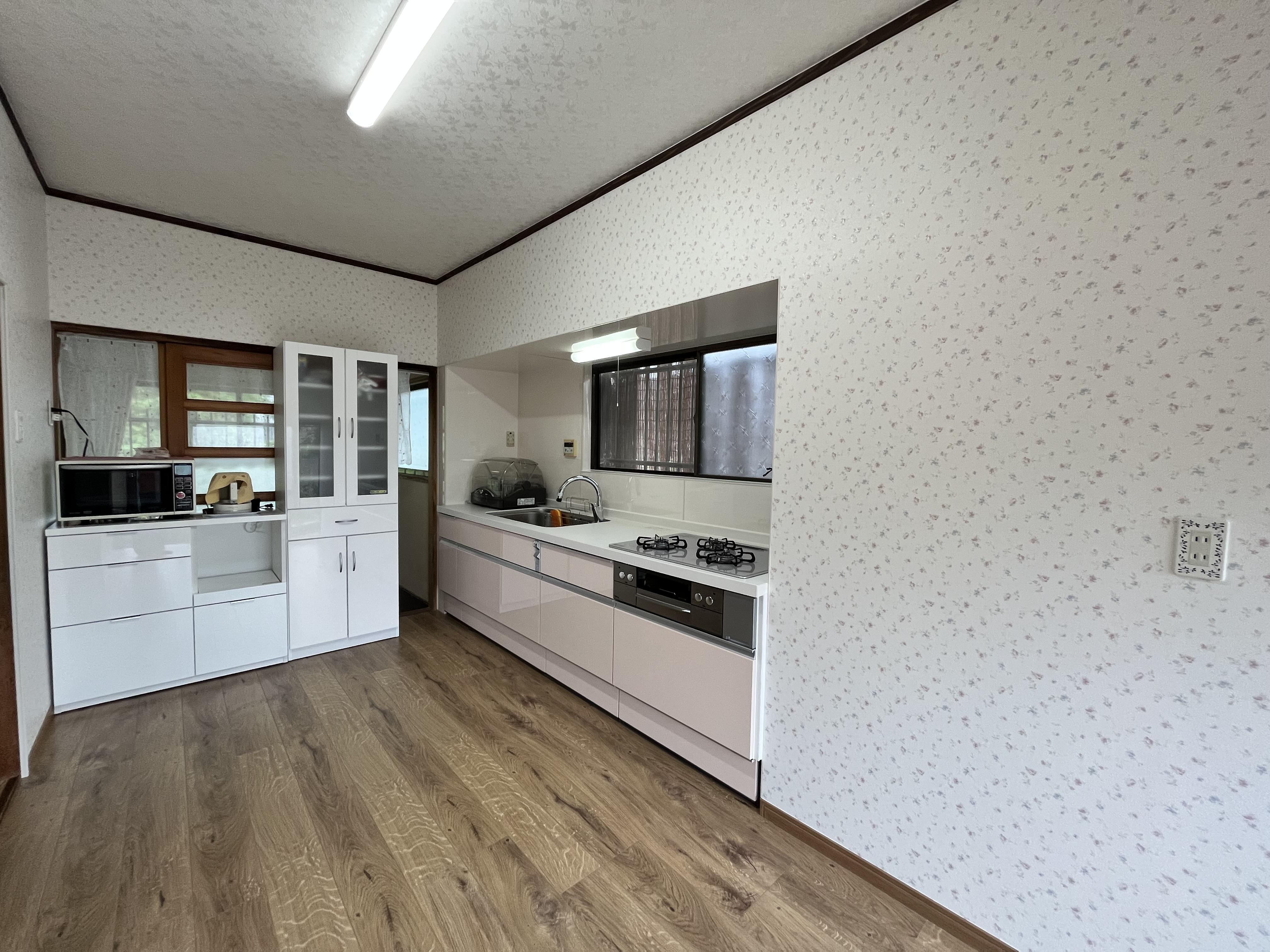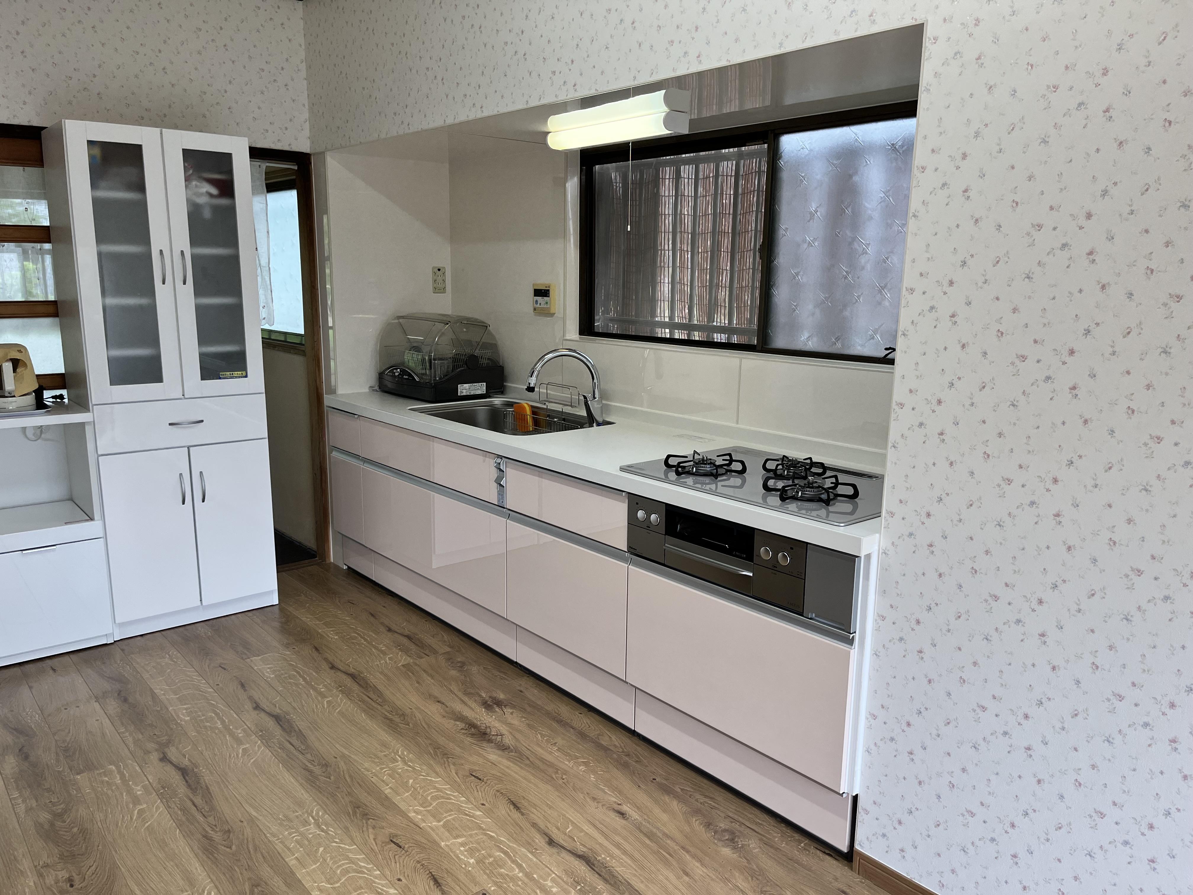古くなってきたことがきっかけでリフォームのご依頼をいただきました。吊戸棚を撤去したことで圧迫感をなくし、広々ご使用いただけるようになりました。収納力はキャビネットをアシストポケット・シェルフ付にしたことでカバーしました。 今まで以上に料理を楽しむことができる明るい空間になりました。