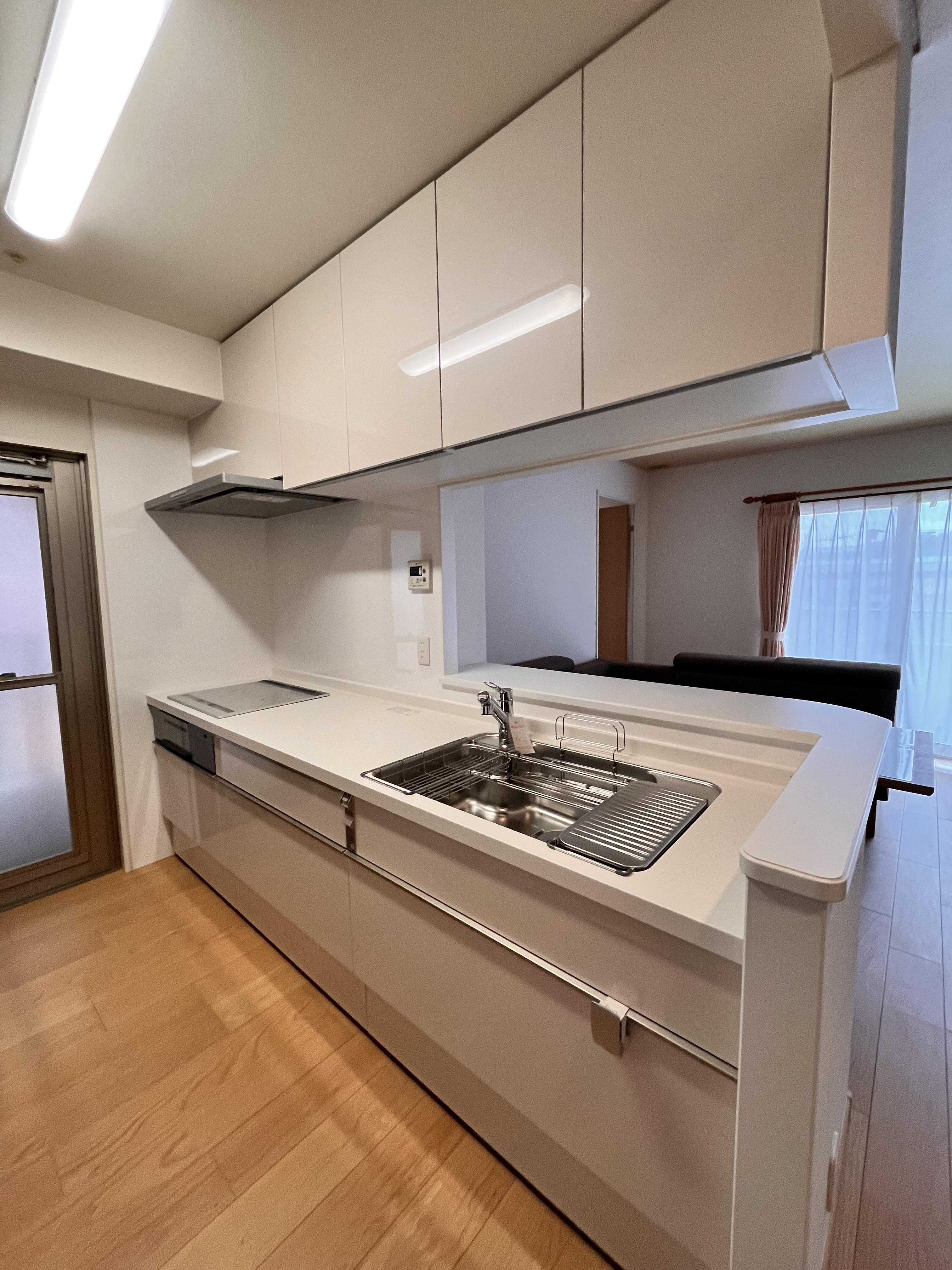 古くなってきたことがきっかけでリフォームのご依頼をいただきました。 キッチンの取替に加えて、キッチンカウンターも新しくしました。 白を基調とした清潔感のあるキッチンとなりました。
