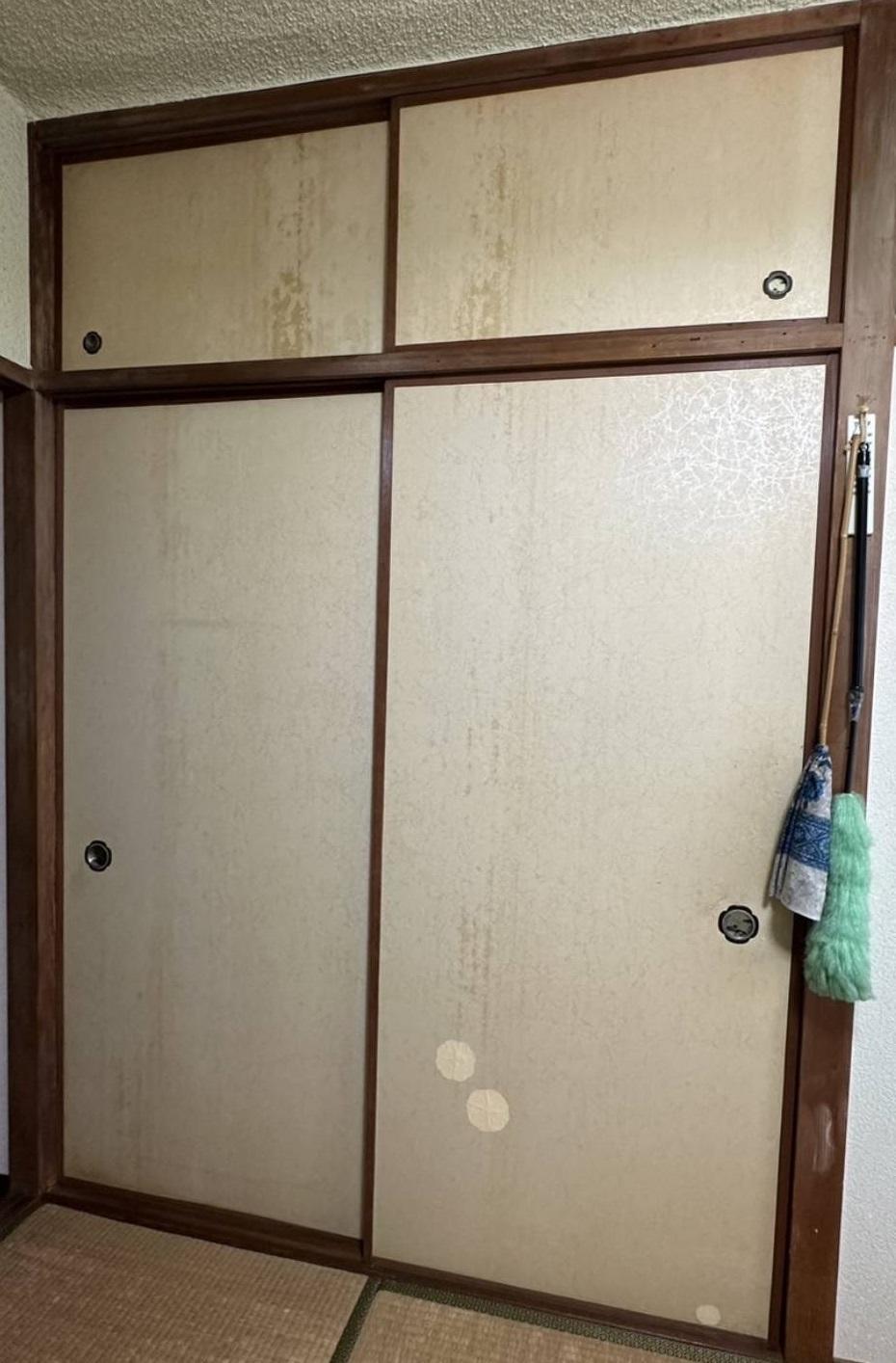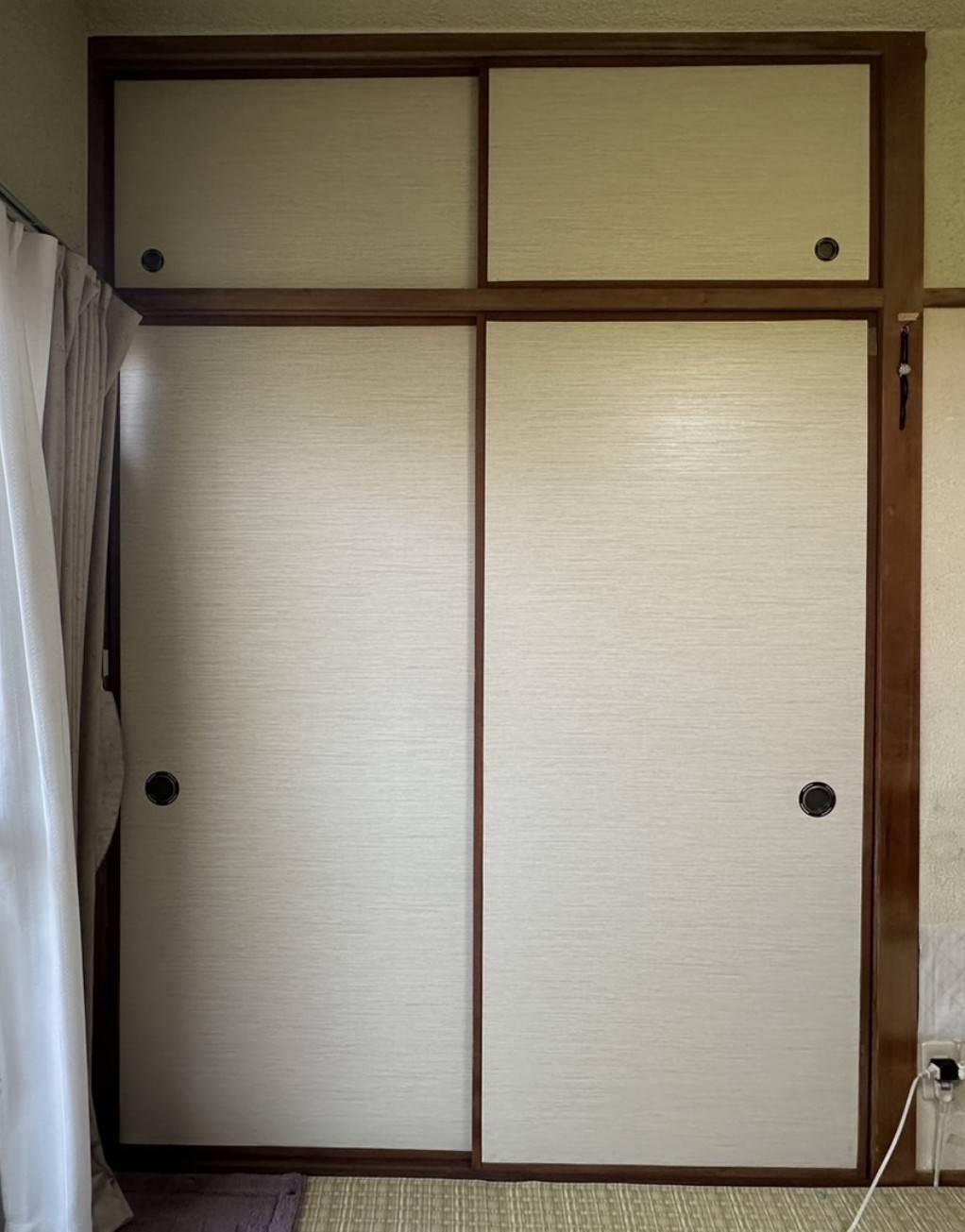 襖の張替を行いました。(天袋4枚、押入片面4枚) 合わせて引手の交換も行いました。 (参考工事価格 3万8千円)