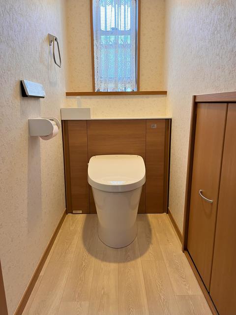 今回はキャビネット付トイレ(リフォレ)を採用いたしました。 リフォレは給水管やコードが露出しているタンクまわり、 床に置きがちなお掃除道具などを、 キャビネット内に隠してすっきり見せることができます。 (参考工事価格 約30~35万円)
