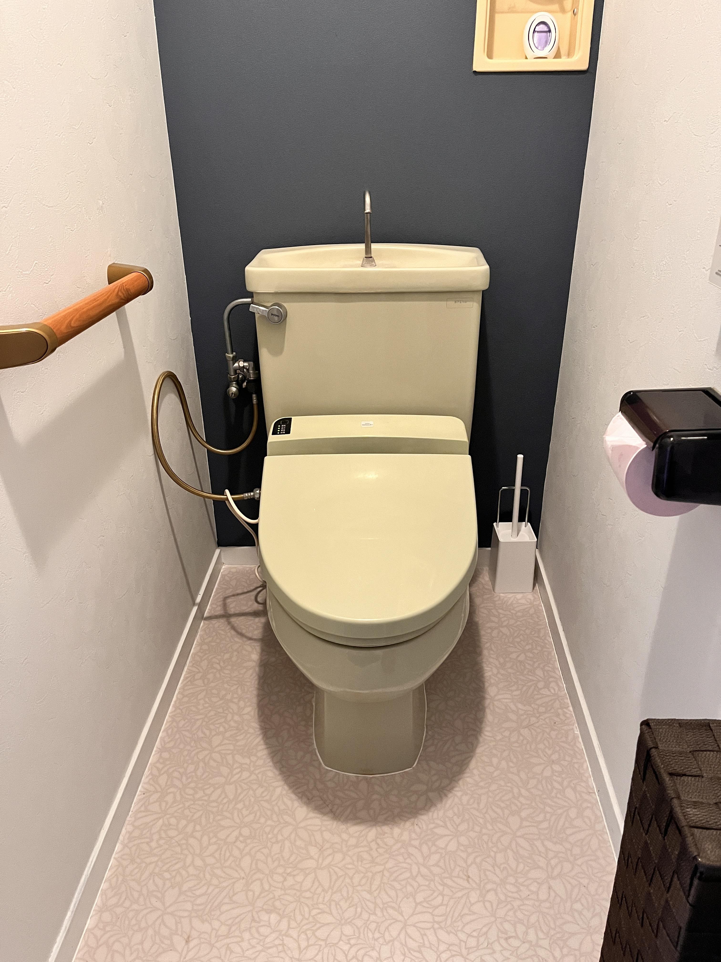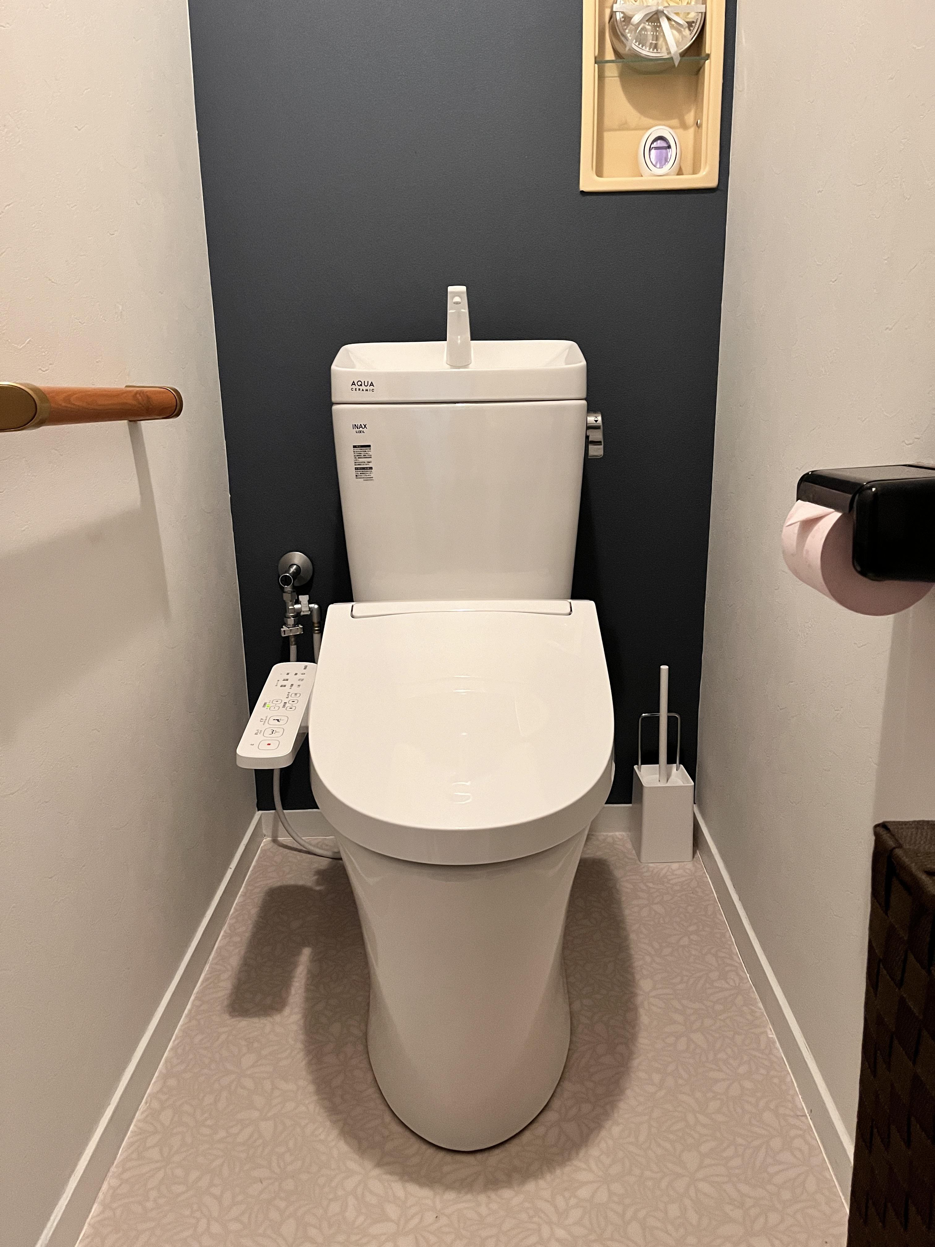 トイレが古くなってきたことがきっかけでお取替えしました。 操作はシンプルで、便器はフチレス形状でお掃除が楽々なシリーズを採用しました。