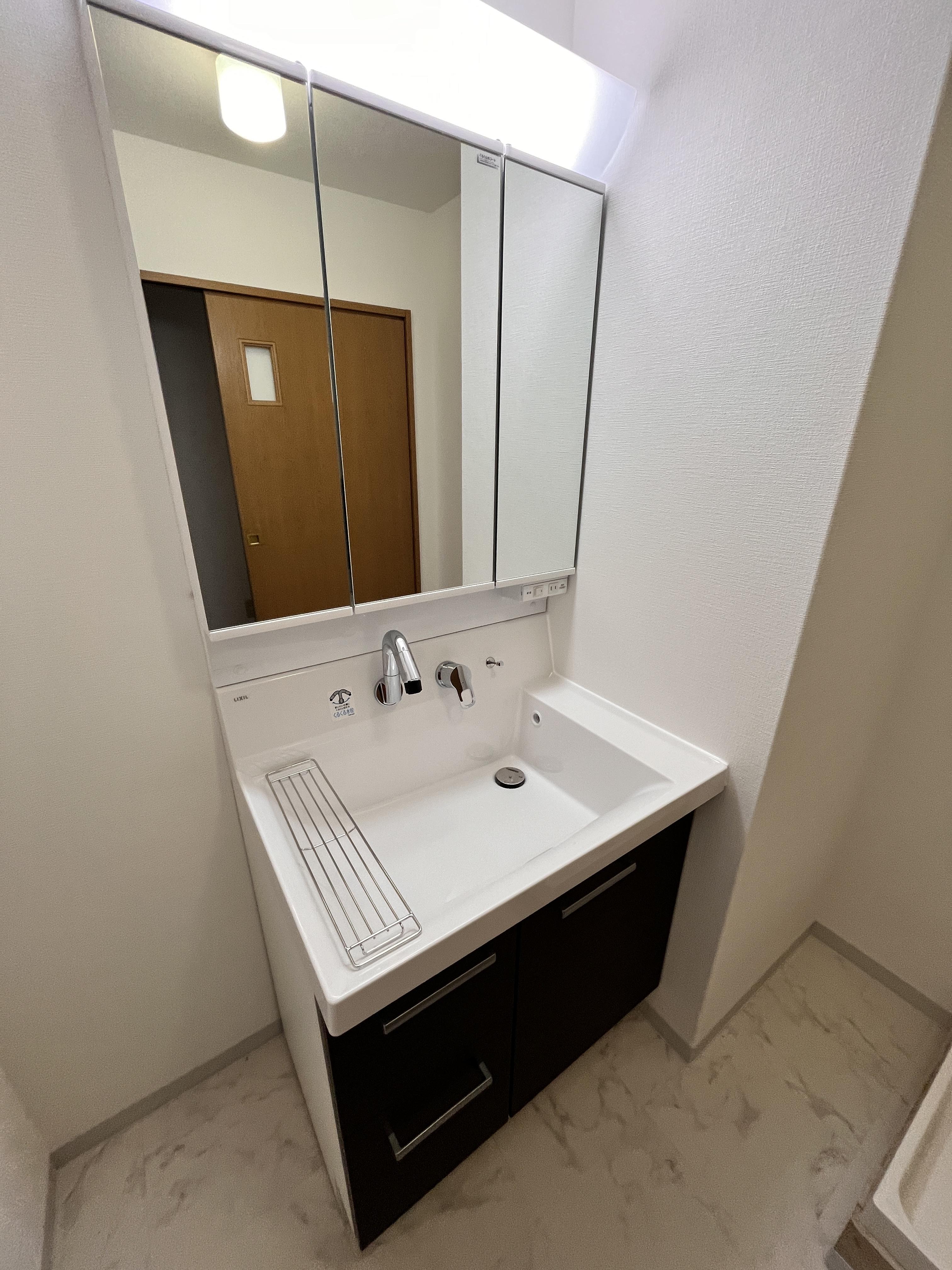 洗面化粧台をお取替えしました。 今回採用したのは、毎日の身支度や家事を今まで以上にラクにするピアラ。 底が広くて平らなひろびろボウルと、くるりと回せるくるくる水栓が特徴です。 クロスとCFシートも貼り替えました。