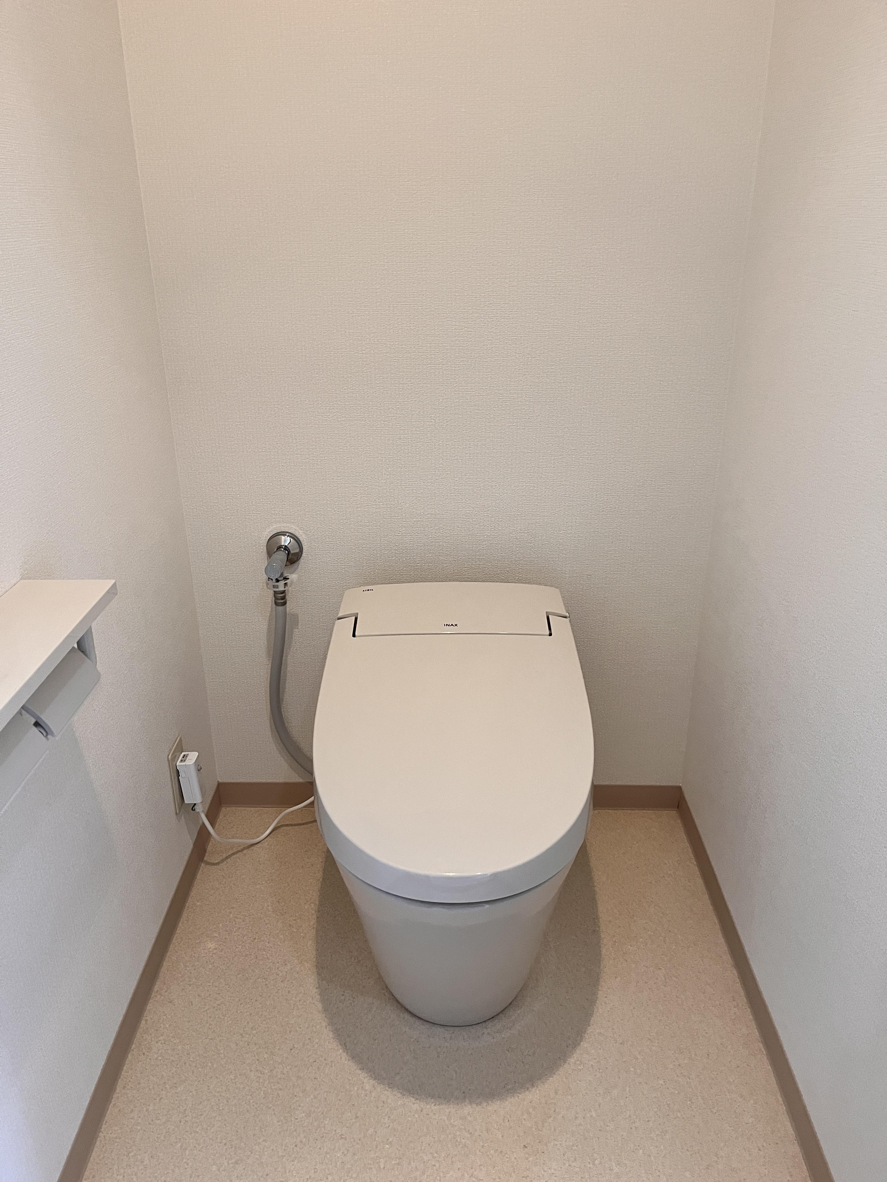 トイレのお取替と、全体のクロス・CFシートを貼替えました。 今回お選びいただいたサティスSは すっきりとしたデザインが特徴的で、お掃除も楽々です。