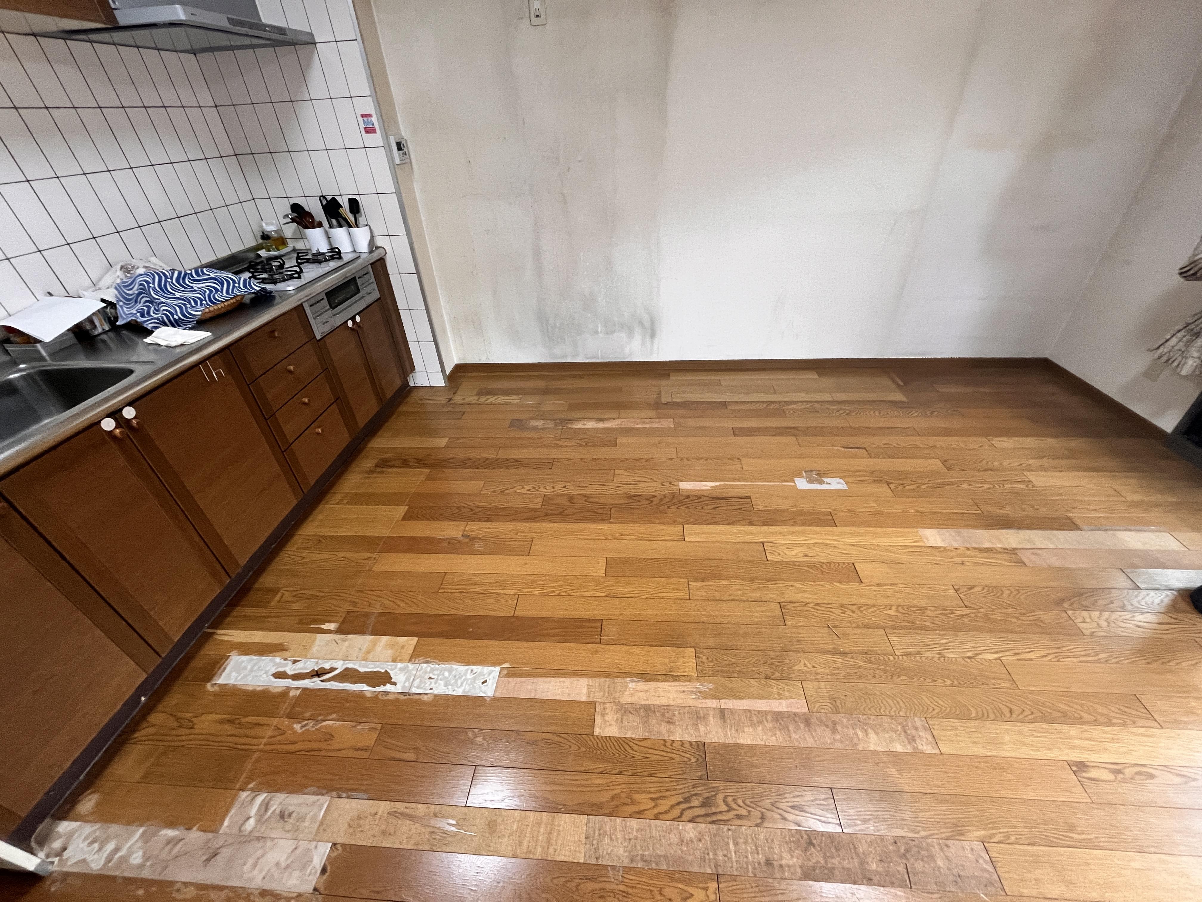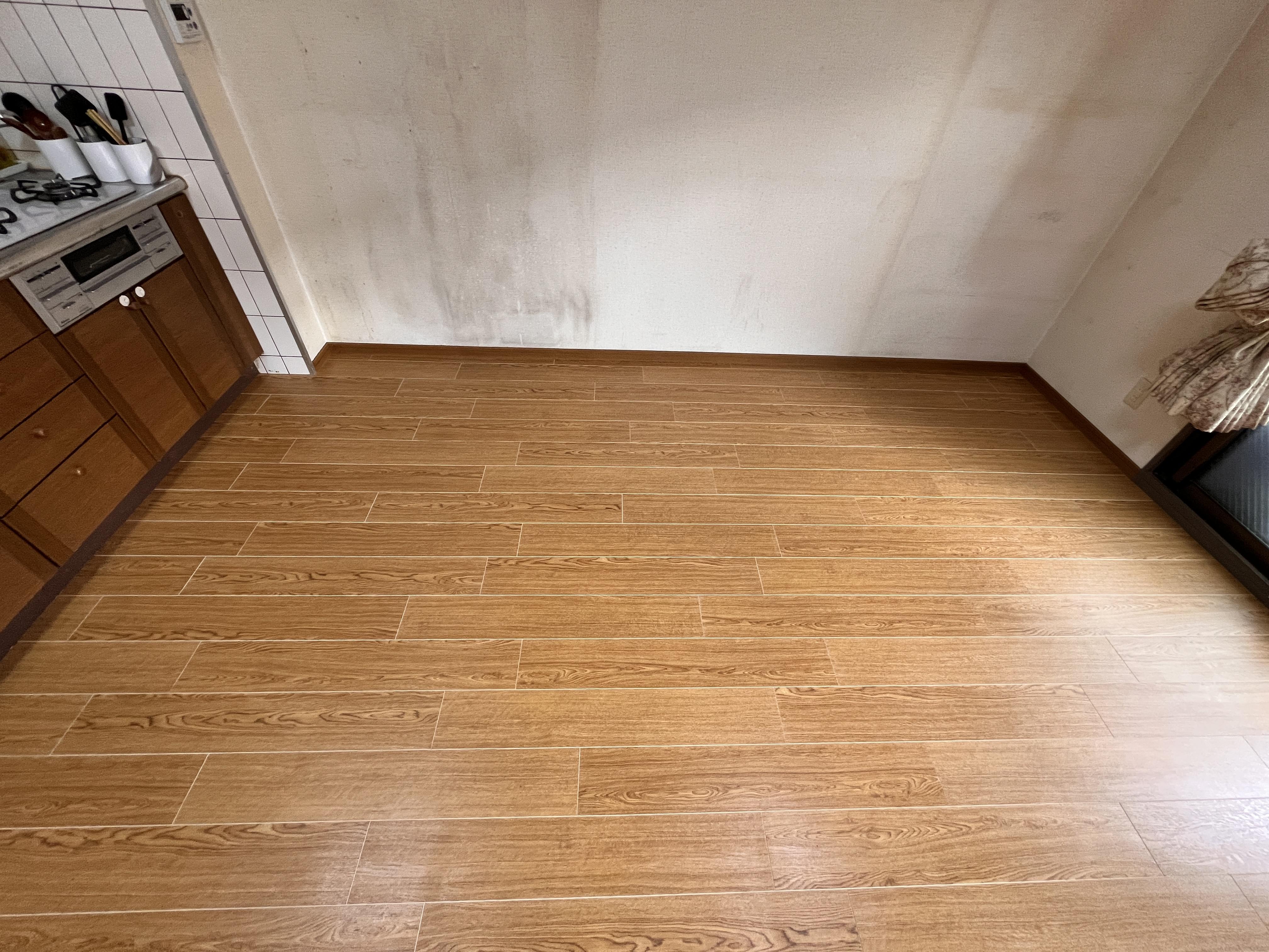 フローリングの表面が剥がれてきたためフロアタイルを貼りました。 木目の表現がリアルなフロアタイルへと変わりました。 フロアタイルは耐久性があり、水や汚れに強いです。 落ち着いた雰囲気になりました。 (参考工事価格 約40~50万円/2LDK)