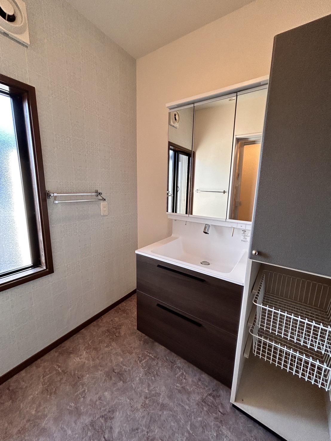 洗面化粧台をお取替えしました。 今回お選びいただいたクレヴィは上から水が出るキレイアップ水栓が特徴です。 水栓まわりに水が溜まりにくくお掃除楽々です。 更に、手をかざすだけで水が自動で出る「タッチレス水栓ナビッシュ」を採用しました。 手が汚れている状況でも水栓のハンドルを手で触ることなく使えるため、快適に水が使えます。 (参考工事価格 約40~50万円)