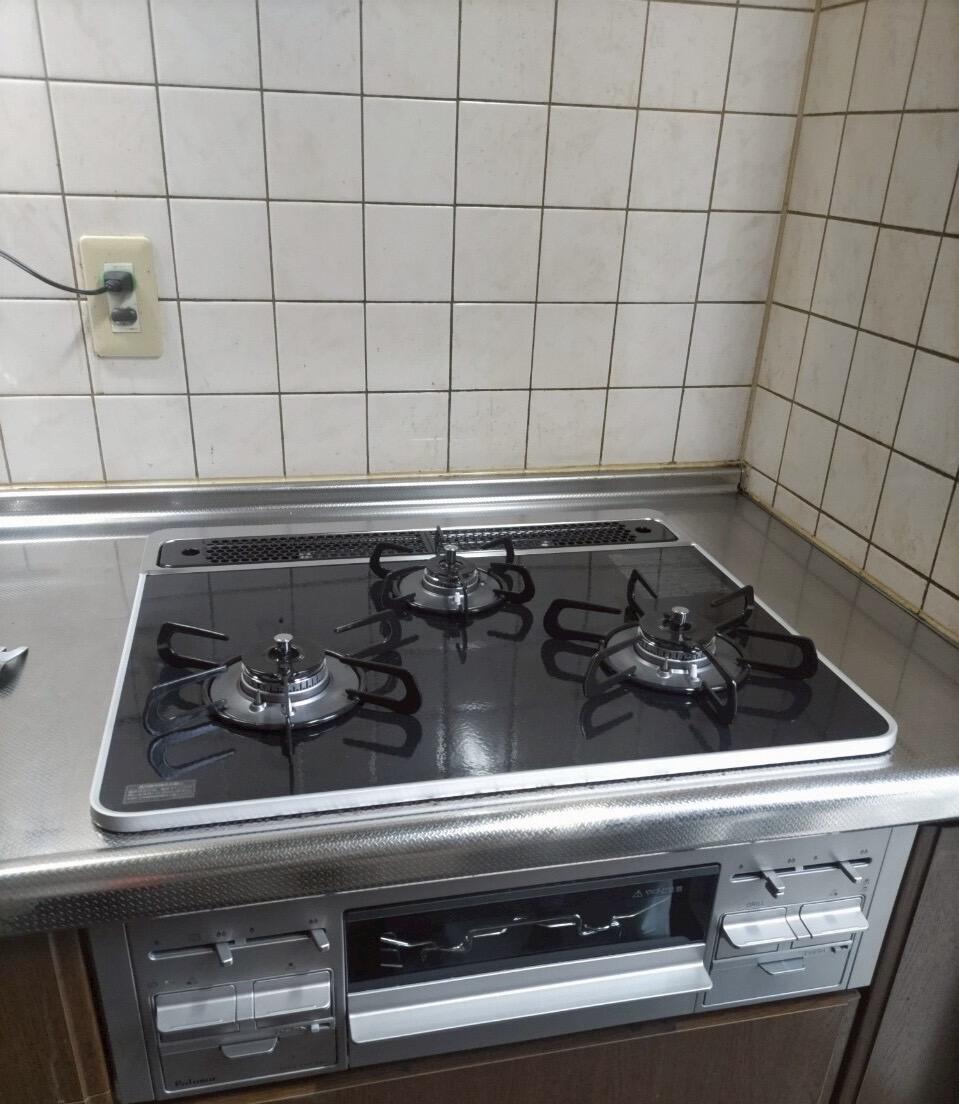 古くなり汚れが落ちにくくなってきた為、ガスコンロの取替を行いました。