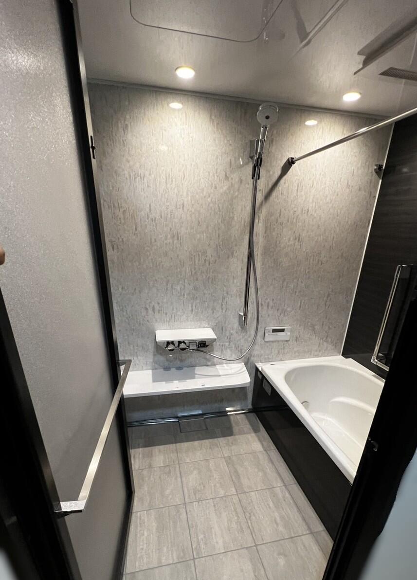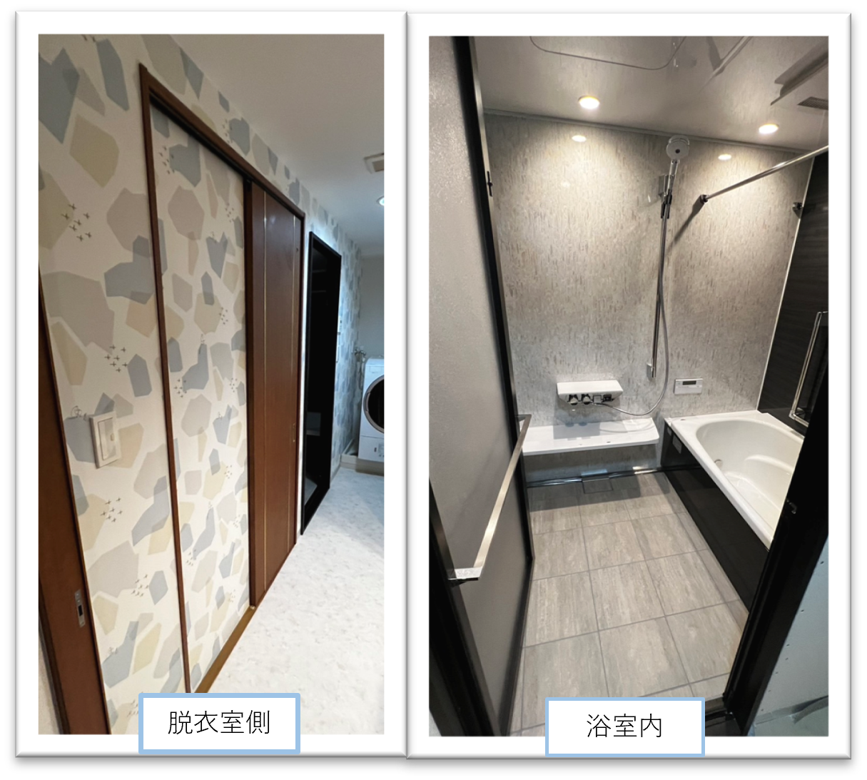 また、浴室リフォームに合わせて、脱衣室のクロスも貼替を行っています。